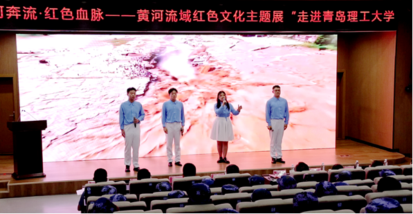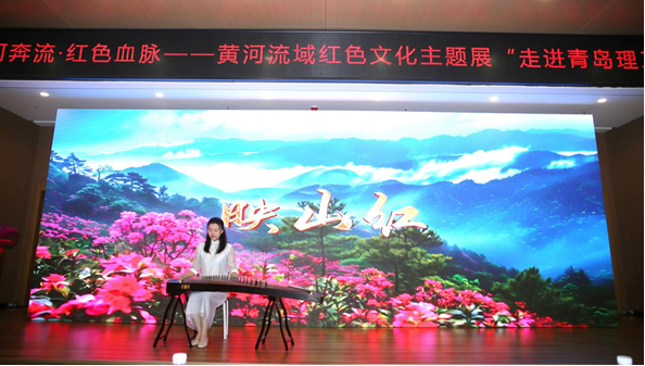 主题展演环节,与会人员观看了由青岛理工大学商学院辅导员于淼的古筝独奏《映山红》及艺术与设计学院艺美润心团的学生们带来的朗诵《黄河》。悠扬深情的筝音仿佛将漫山遍野的映山红和红军时代的炽热信念带到了现场,同学们则用雄浑的声音演绎了黄河的磅礴气势与不屈的民族之魂,引发了在场师生的强烈共鸣。