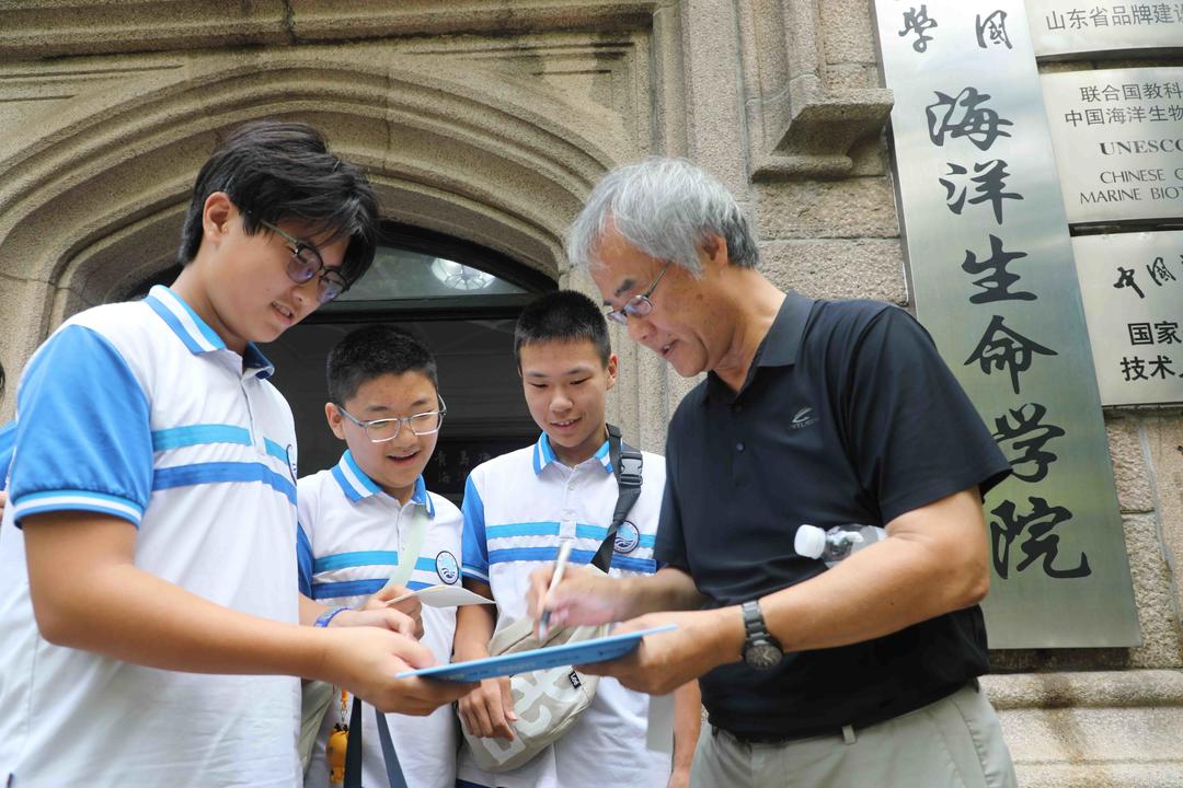 中国科学院院士宋微波、中国海洋大学副校长王厚杰为与会学生代表赠送图书,青岛市科协党组成员、副主席秦云鹏出席活动并致辞,来自青岛实验初级中学、青岛二中、二十六中、三十九中等学校的近300名学生参加活动。