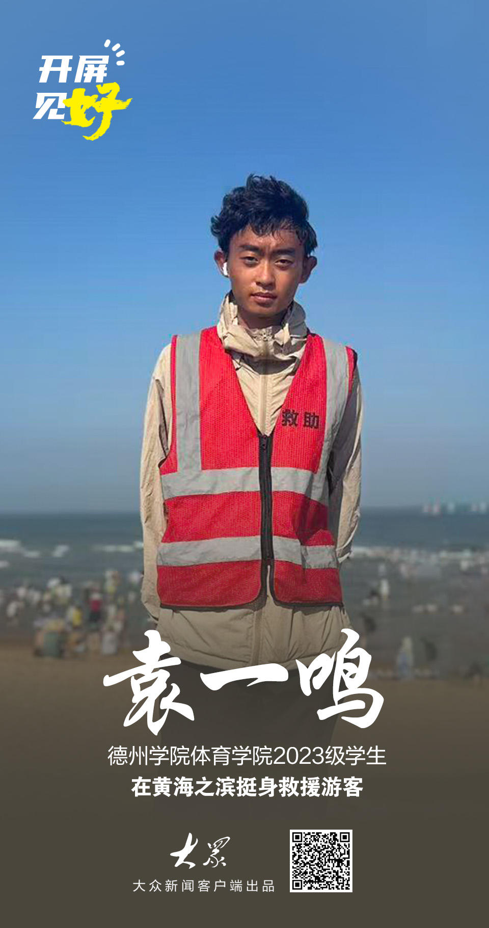 记者采访了解到,袁一鸣是德州学院体育学院2023级学生,暑假期间在日照担任救生员。