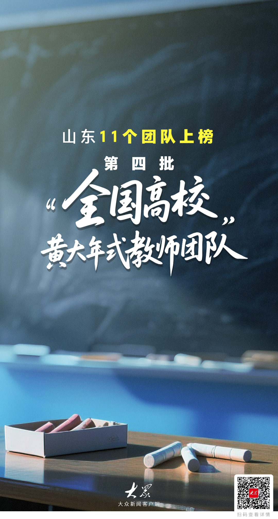 9月5日,教育部公布第四批“全国高校黄大年式教师团队”创建示范活动入围名单,山东共11所高校的11个教师团队上榜,比2023年的第三批在数量上增加了4个。