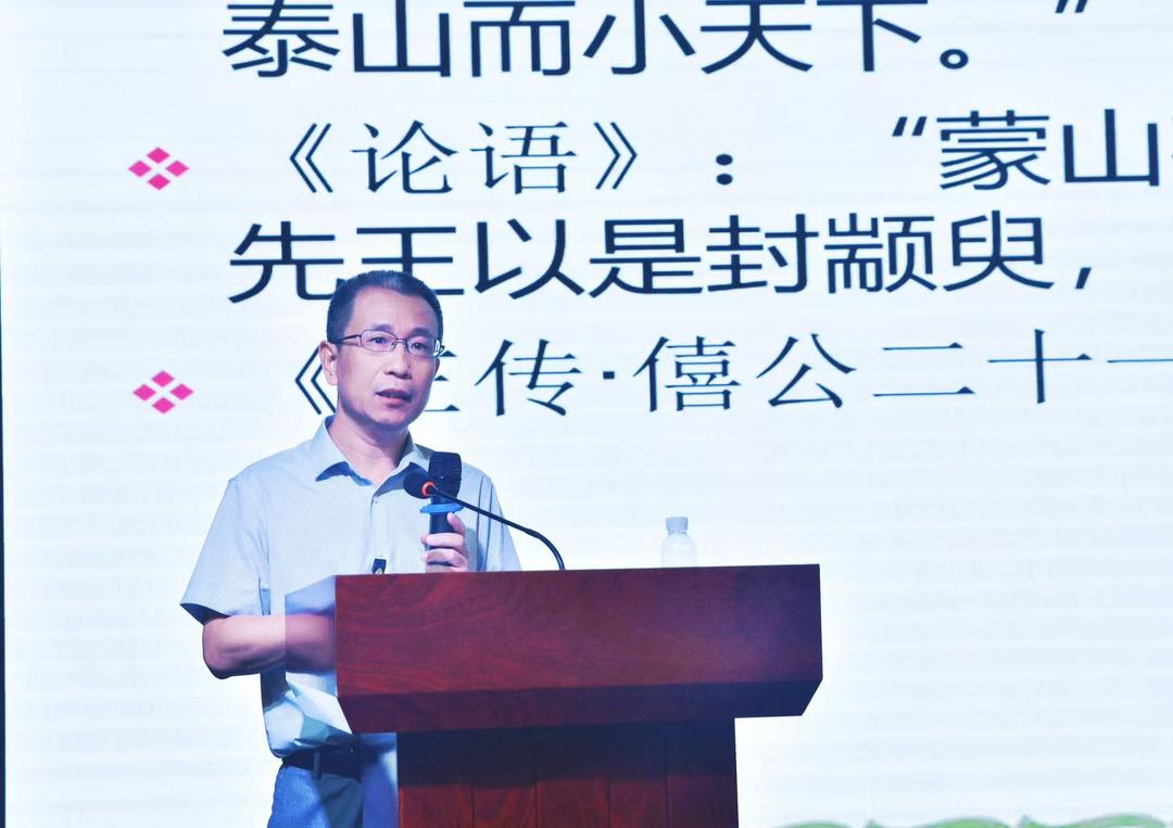 论坛的核心环节,山东大学儒学高等研究院教授、博士生导师、中国杜甫研究会副会长孙微做了题为《唐代诗歌与蒙山道家文化》的专题讲座。作为央视《跟着唐诗去旅行》特约嘉宾,他以《尚书》《诗经》为切入点,讲述了蒙山文化的历史渊源和中国早期的山川信仰,又通过诗词文献,还原了蒙山在唐代文人心中的“诗意地位”,指出蒙山唐代时即为文人逸士修仙隐居之地,恰好契合了当代的养生理念,因此蒙山不仅是一座文化名山,更是一处名副其实的康养胜地,让现场听众穿越千年,深刻感受到蒙山的文化魅力。