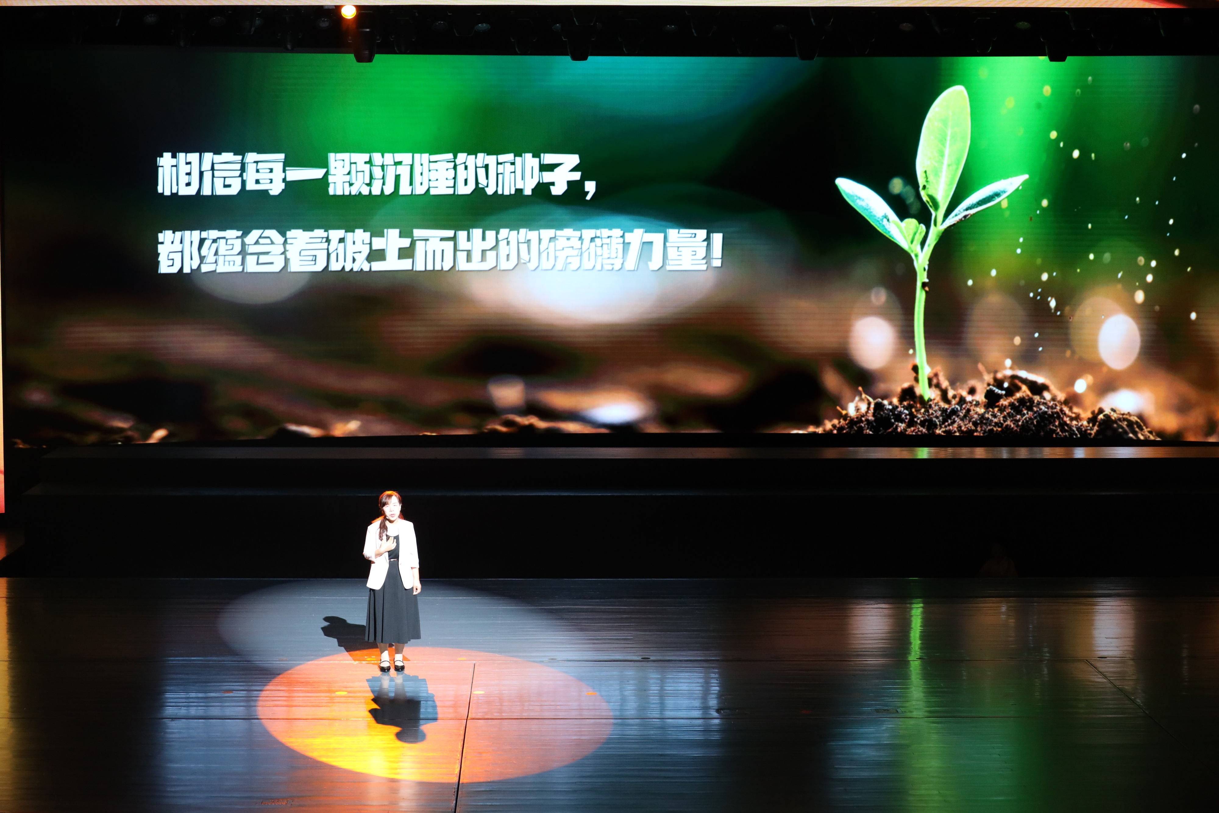 大会现场为国家级、省级教学名师及淄博市优秀教师、班主任、教育工作者颁奖。目前,淄博市构建起以4万名中小学教师为基座,以3639名骨干教师、664名省市级名师、13名国家名师为引领的基础教育人才雁阵,每200名教师就有1名省级以上名师,被省教育厅誉为名师培养的“淄博现象”。师德代表、淄博高新区一中教师张海蓉在分享中动情地说:“作为一名老师,守望的意义在于——相信每一颗沉睡的种子,都蕴含着破土而出的磅礴力量!”