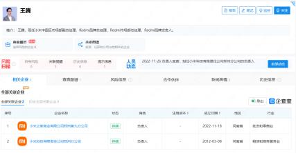 据悉,2023年9月11日,王腾通过其个人微博宣布,在结束两年线下轮岗后重新回到小米总部,已担任REDMI品牌发言人、REDMI市场部总经理。2024年12月31日,王腾微博认证改为小米中国区市场部总经理、REDMI 品牌总经理。