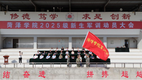 秋光正好,丹桂盈香。9月9日上午,菏泽学院2025级新生军训动员大会在田径场举行。党委委员、副校长富元斋作动员讲话,党委委员、副校长曲相艳向菏泽学院军训团教官、大队队长代志昊授军训团团旗,菏泽军分区战备处副处长李兆强出席动员大会。大会由学生工作处(人民武装部)处长(部长)尹晓允主持。