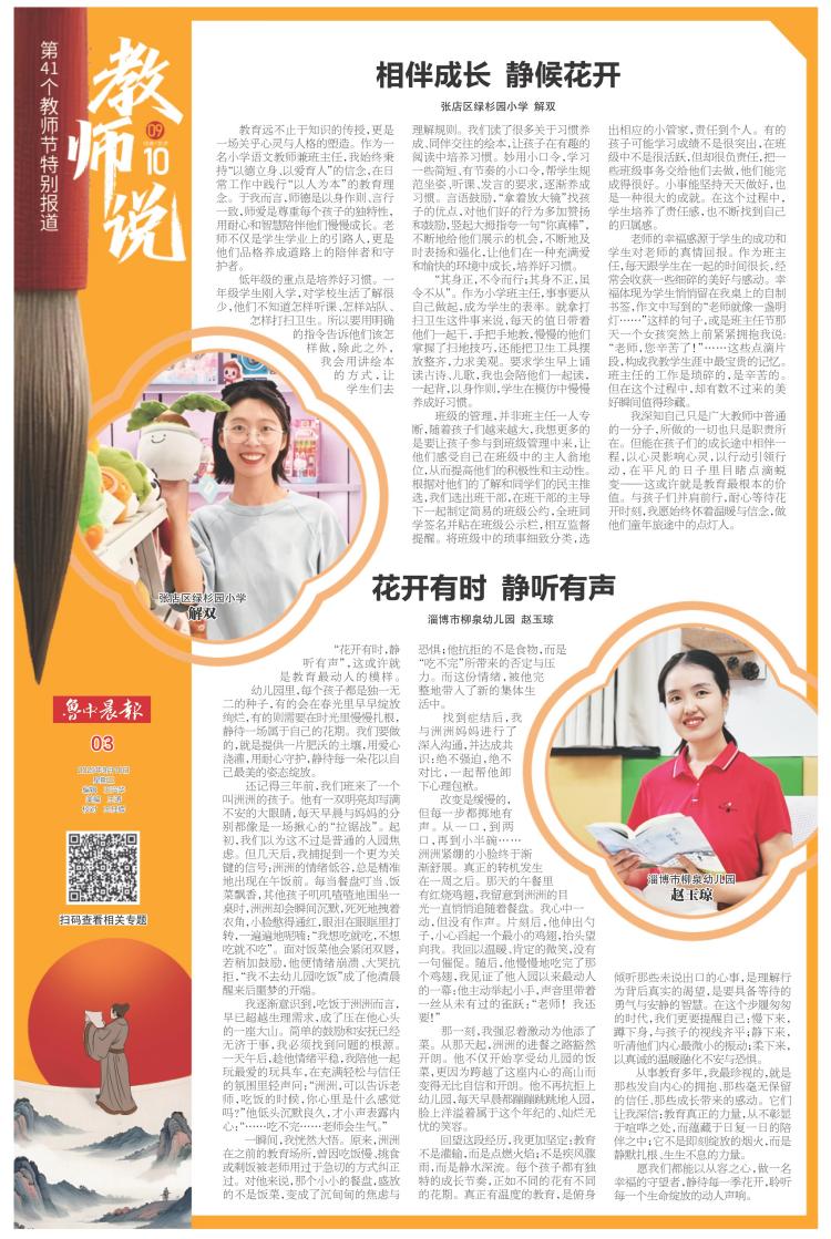 在这个金风与硕果共舞的美好时节,第41个教师节带着满满的温情走来。大众日报淄博融媒体中心推出“教师说”特别报道,诚邀老师们打开心扉,分享那些藏在岁月里的教育故事,让温暖与感动在字里行间流淌。
