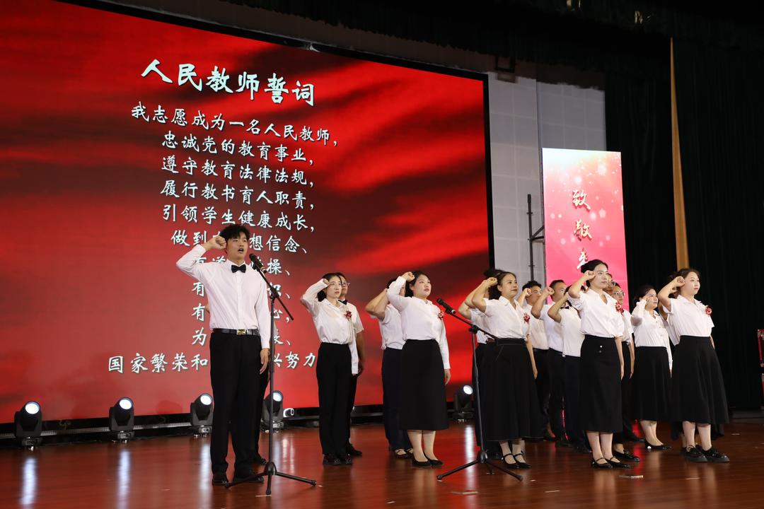会上,2025年新入职教师进行宣誓,这是新教师对教育事业的承诺,也是枣职教育事业薪火相传的见证。