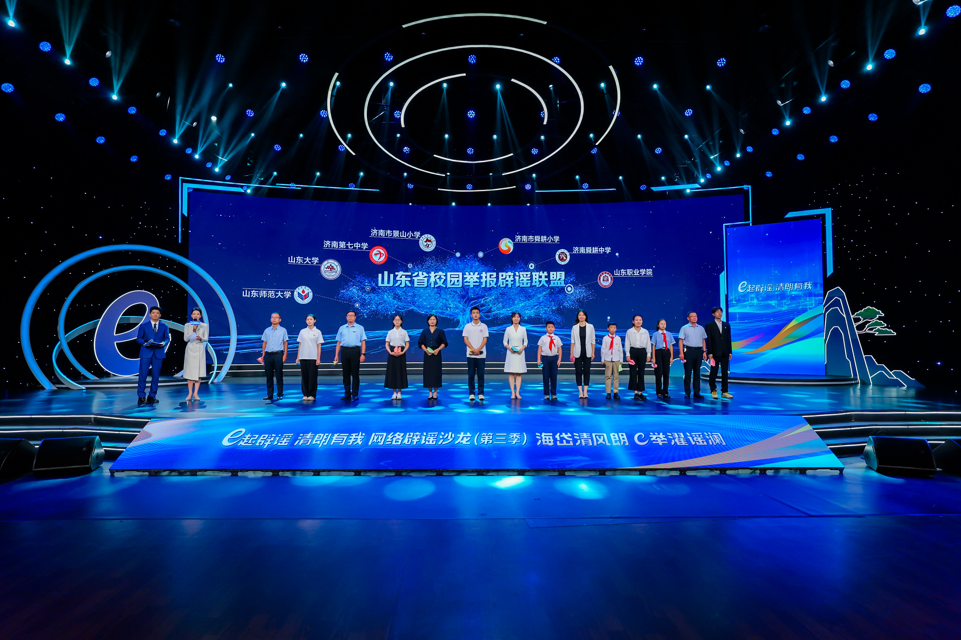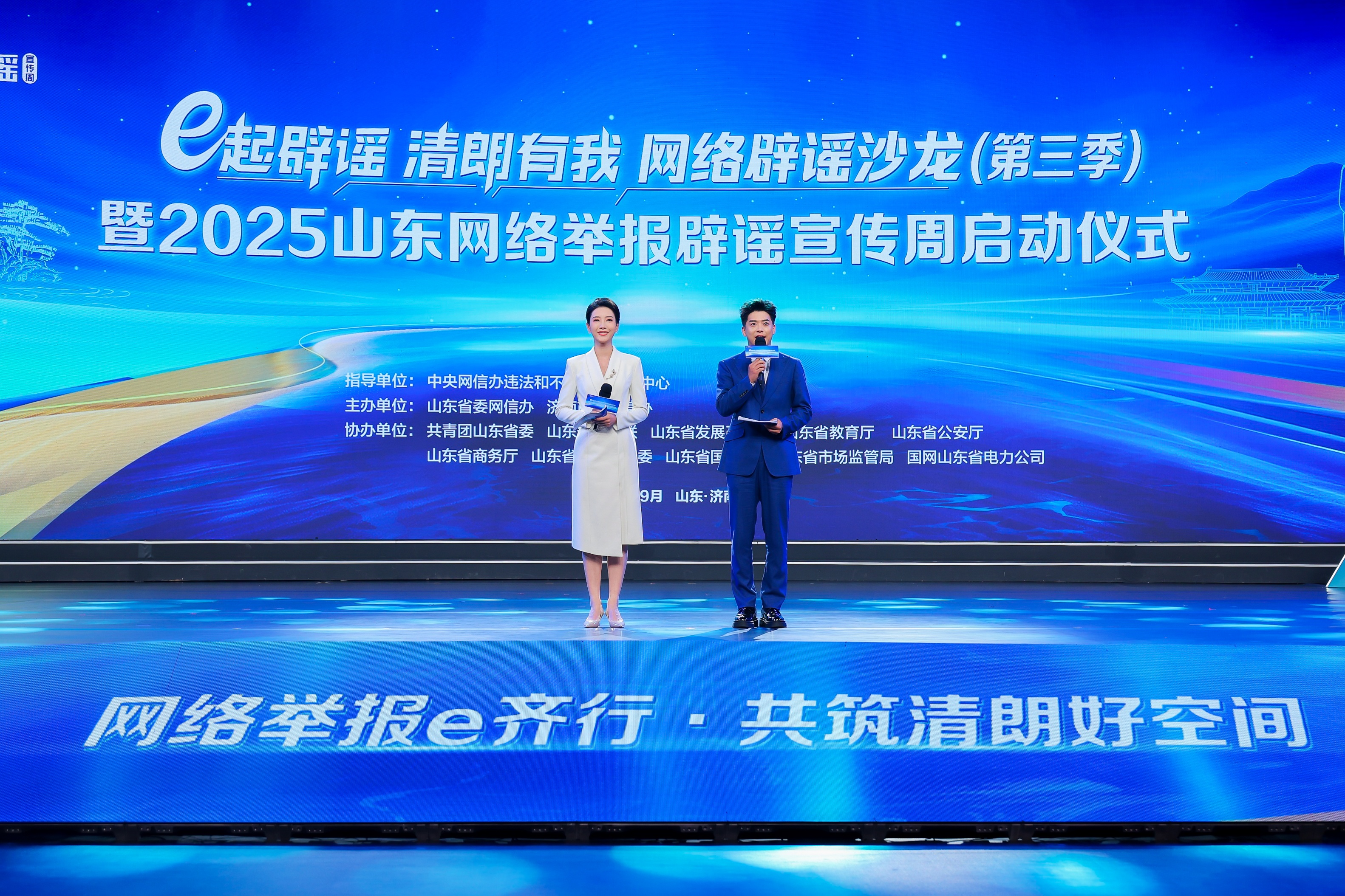 9月10日下午,由中央网信办违法和不良信息举报中心指导,山东省委网信办、济南市委网信办主办的“e起辟谣 清朗有我”网络辟谣沙龙(第三季)暨2025山东网络举报辟谣宣传周启动仪式在济南举行。