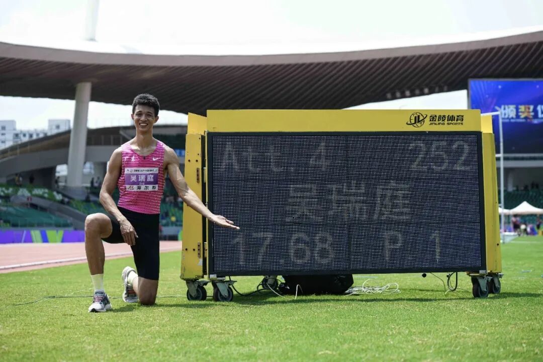 今年8月初的全国田径锦标赛上,吴瑞庭打破了尘封多年的男子三级跳远全国纪录。