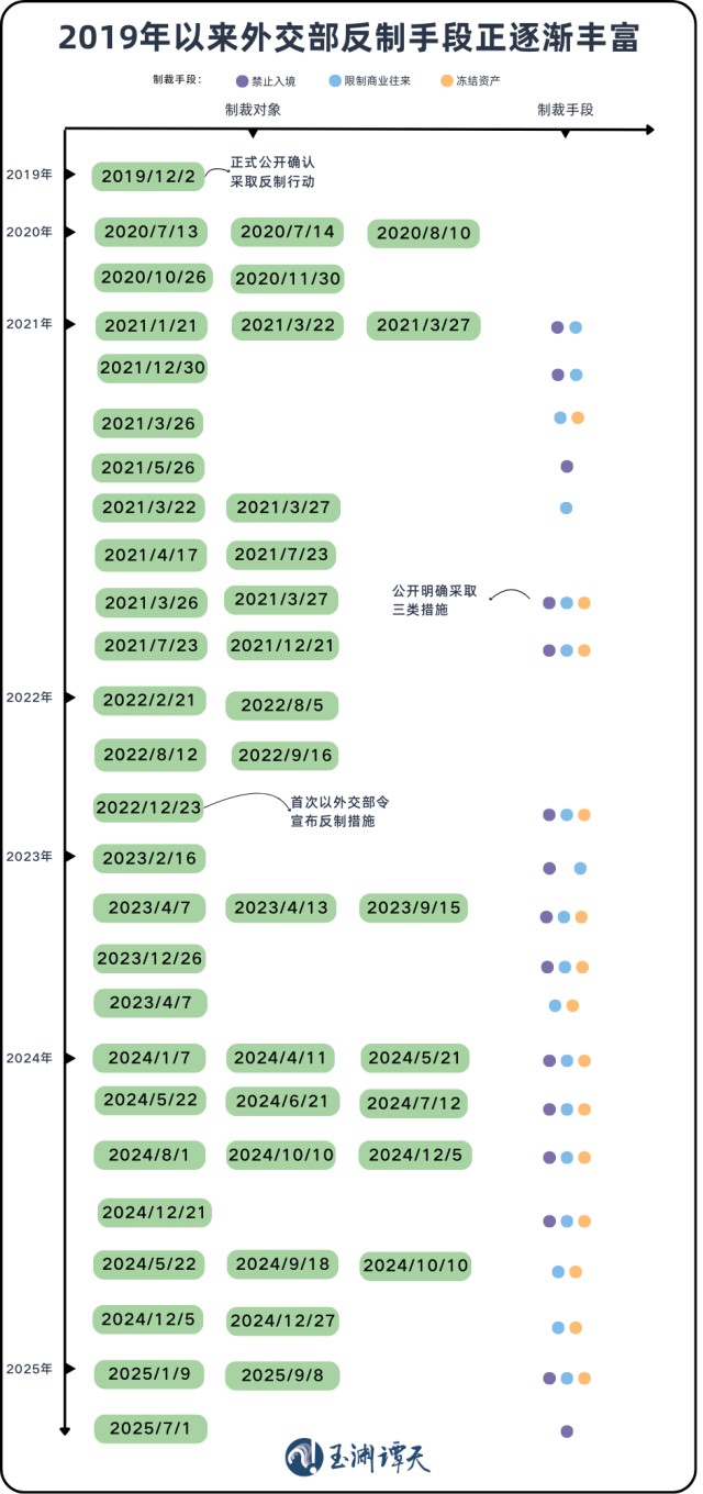 当时,外交部开始通过发言人表态宣布制裁,正式公开确认采取反制行动。2019到2020年基本如此。