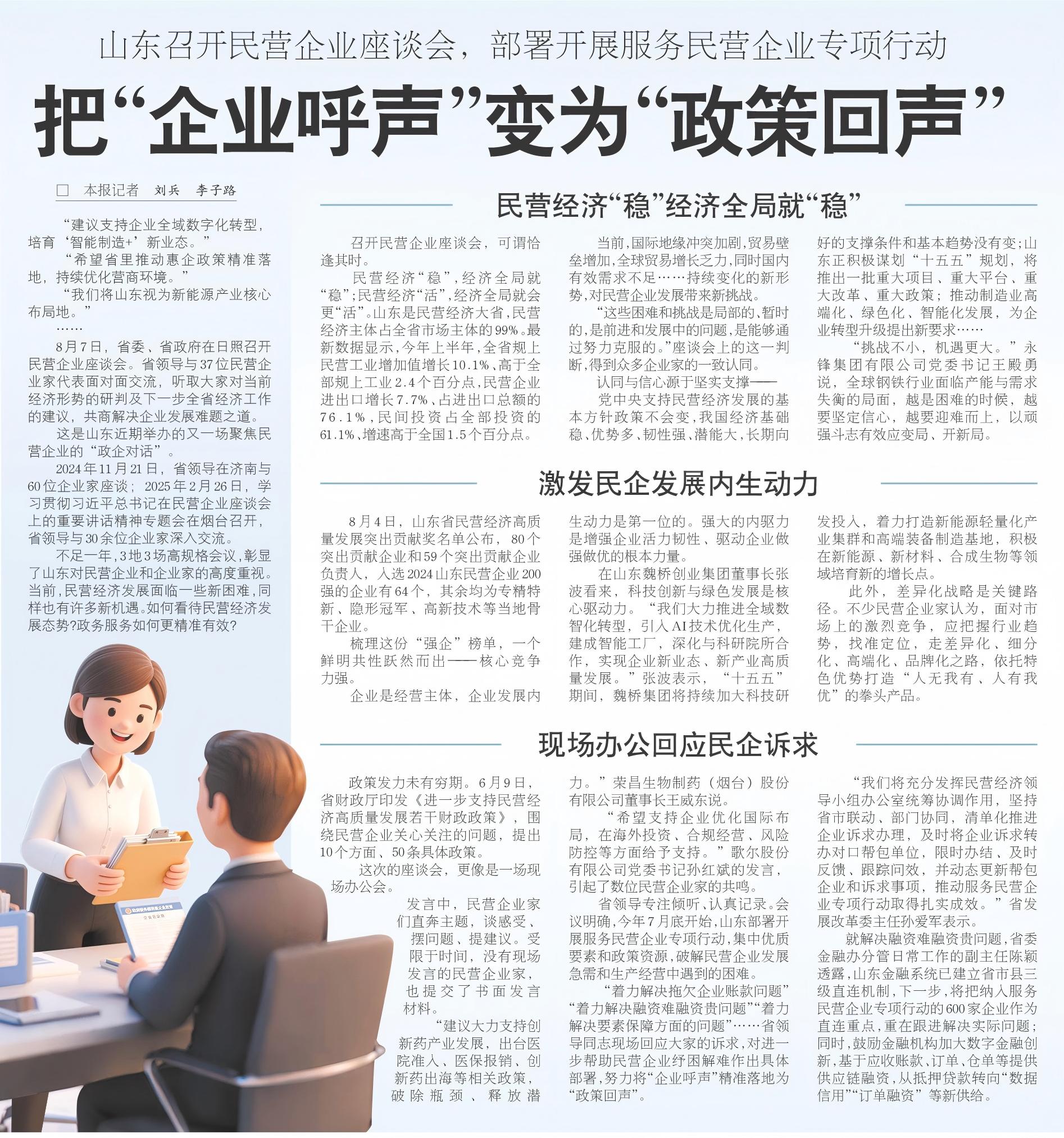 ◎山东召开民营企业座谈会,部署开展服务民营企业专项行动