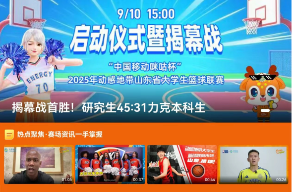 作为本届联赛的主办单位之一,山东移动始终秉持支持青年成长、助力教育体育事业发展的理念,积极为高校学子提供优质服务。其推出的动感地带校园卡,更是在满足年轻群体流量语音需求的基础上,提供NBA联盟通会员、2T云盘空间等诸多权益,一站式满足同学们的吃喝玩乐学需求。同时,依托山东移动5G-A技术优势、4K/8K技术和体育赛事运营经验,咪咕视频APP为本届联赛提供超高清、低时延的直播赋能,在客户端内打造本次大学生篮球联赛专区,为学生提升沉浸式观赛体验和赛后精彩集锦。