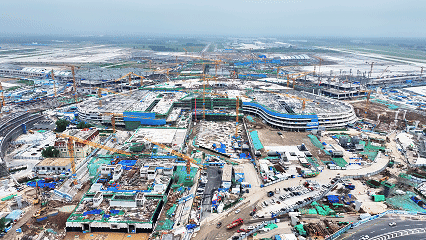 “空铁轨路”零距离换乘!济南遥墙机场交通枢纽中心封顶