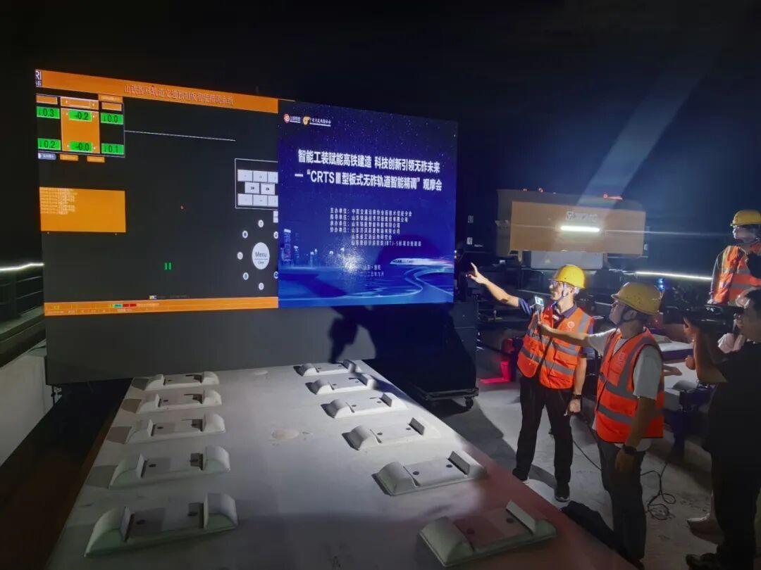 近日,“CRTSⅢ型板式无砟轨道智能精调”观摩会在滨州市惠民县济滨高铁站前5标举行。山东铁投所属智科公司研发的CRTSIII型板式无砟轨道智能化施工装备亮相本次观摩会,现场展示了对重达8吨/块的轨道板自动化作业,其自主铺轨精度可达±0.5毫米,精调效率平均为5分钟/板,精度、效率指标均显著高于传统人工铺设方式。