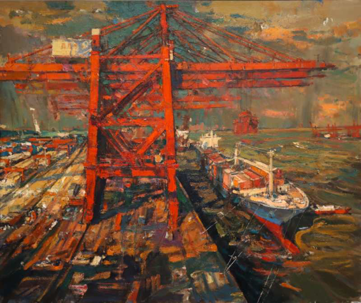 刘玉龙 油画《扬帆起航—海丝起点之厦门港码头》 布面油画 200cm×240cm 2024