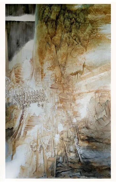 毕敬虎 水彩(粉)《丝路琵琶梦》 纸本水彩 120cm×255cm 2018