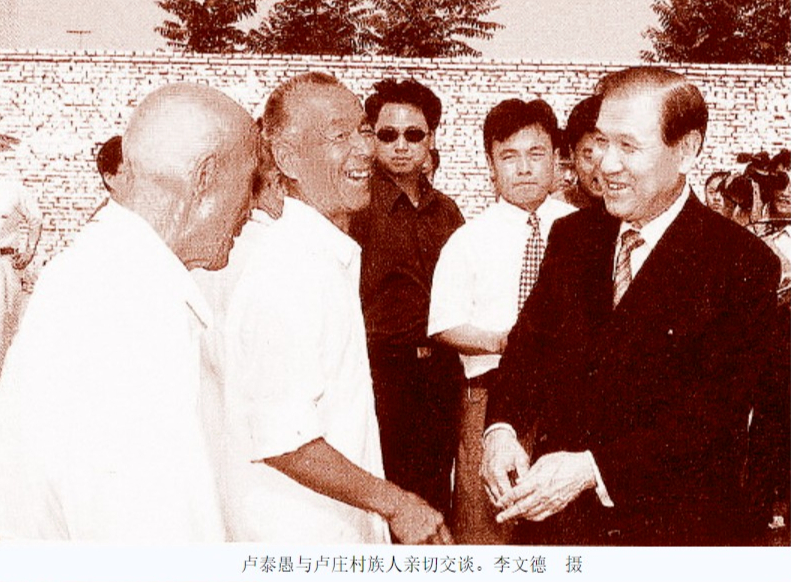 2000年6月18日,卢泰愚偕夫人一行来长清寻根问祖。欢迎仪式结束后,卢泰愚走到宗亲当中与大家畅叙亲情。对几位围上前来的老者说,“中韩虽然相隔万水千山路途遥远,语言不通,但困难可以克服,今天我们终能走到一起来了,实在是太高兴了。”