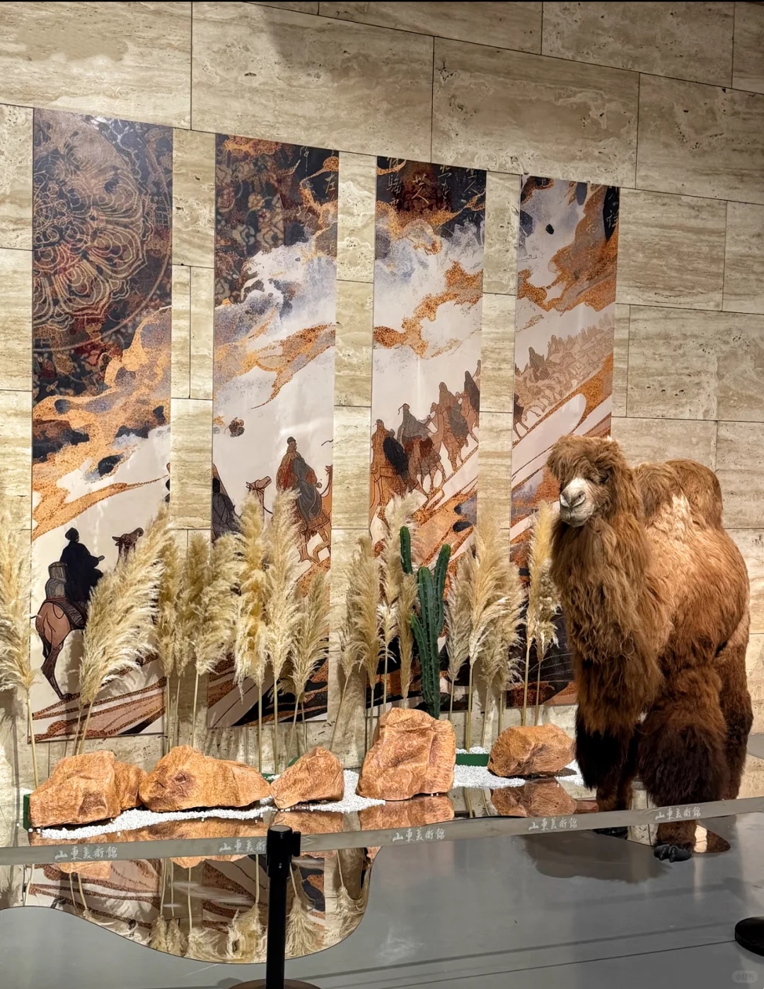 此外,展览还设置了多个极具美感的打卡点,如神秘灵动的三兔共耳、萌感满满的“沙漠之舟”骆驼、宝相庄严的佛窟造像等,助你轻松拍出具有“河西走廊”恢弘气势的大片。现场还设有琳琅满目的文创衍生品区和打卡集章区,你可以将敦煌的色彩与元素融入现代生活用品,或集齐近百种限定印章,解锁敦煌文化的千“色”万“相”,留下独特的旅行纪念。