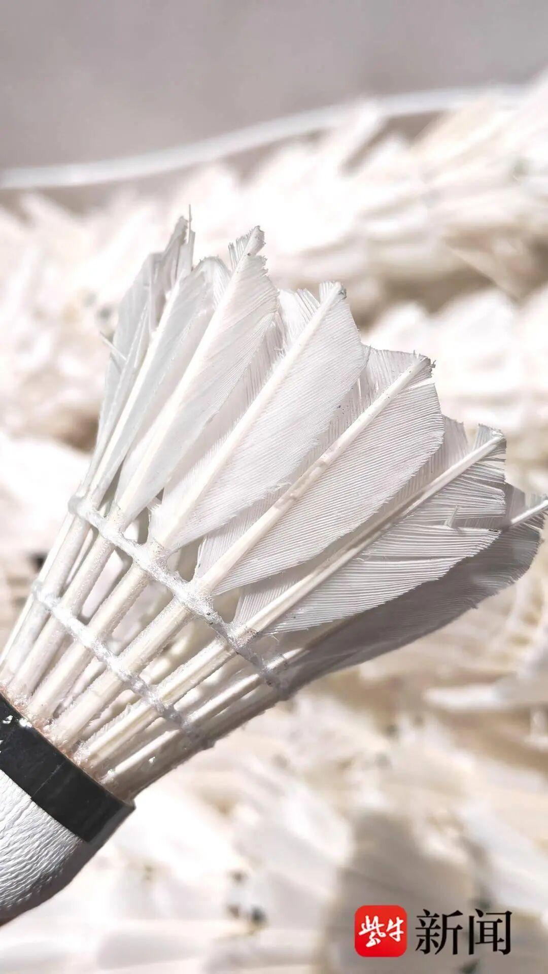 羽毛球的毛片有鹅毛和鸭毛两种,奥运会、世锦赛、超级系列赛这样的顶级赛事所使用的全部是鹅毛球,这是因为相较于形态相似的鸭毛,鹅毛在结构和性能上表现更加优越。且制球对于羽毛品质的要求颇高,受到毛片生长方向的影响,一只球只能用同一侧的羽毛,否则球无法在空中旋转,也就是说做一只球要从无数只鹅里面挑选。最后,还要经过累计共30多道工序,才能制成一个合格的羽毛球。