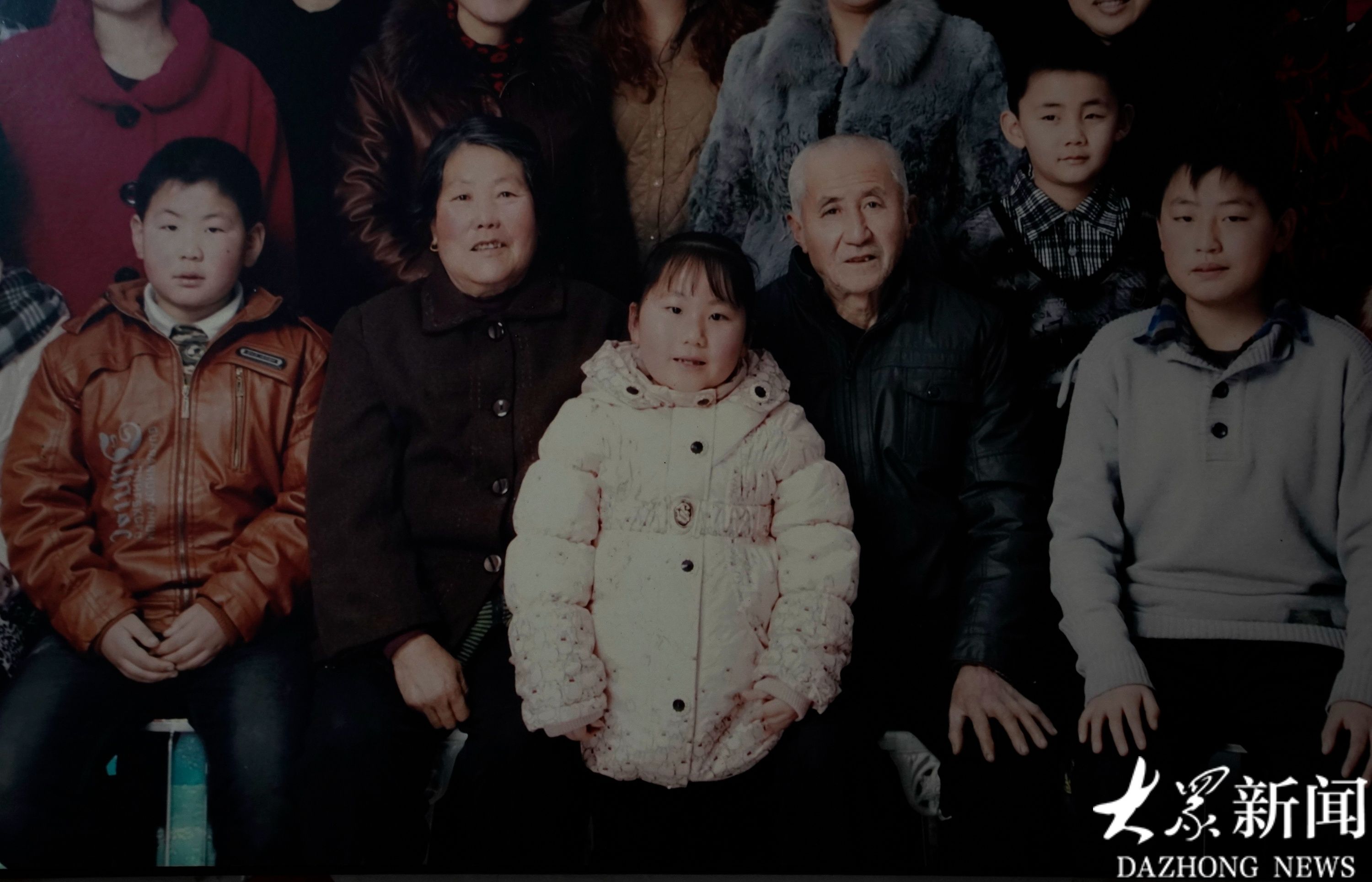 山东省日照市五莲县高泽村,何炎格(中)6岁左右时的照片,那时的她还能被扶着站立