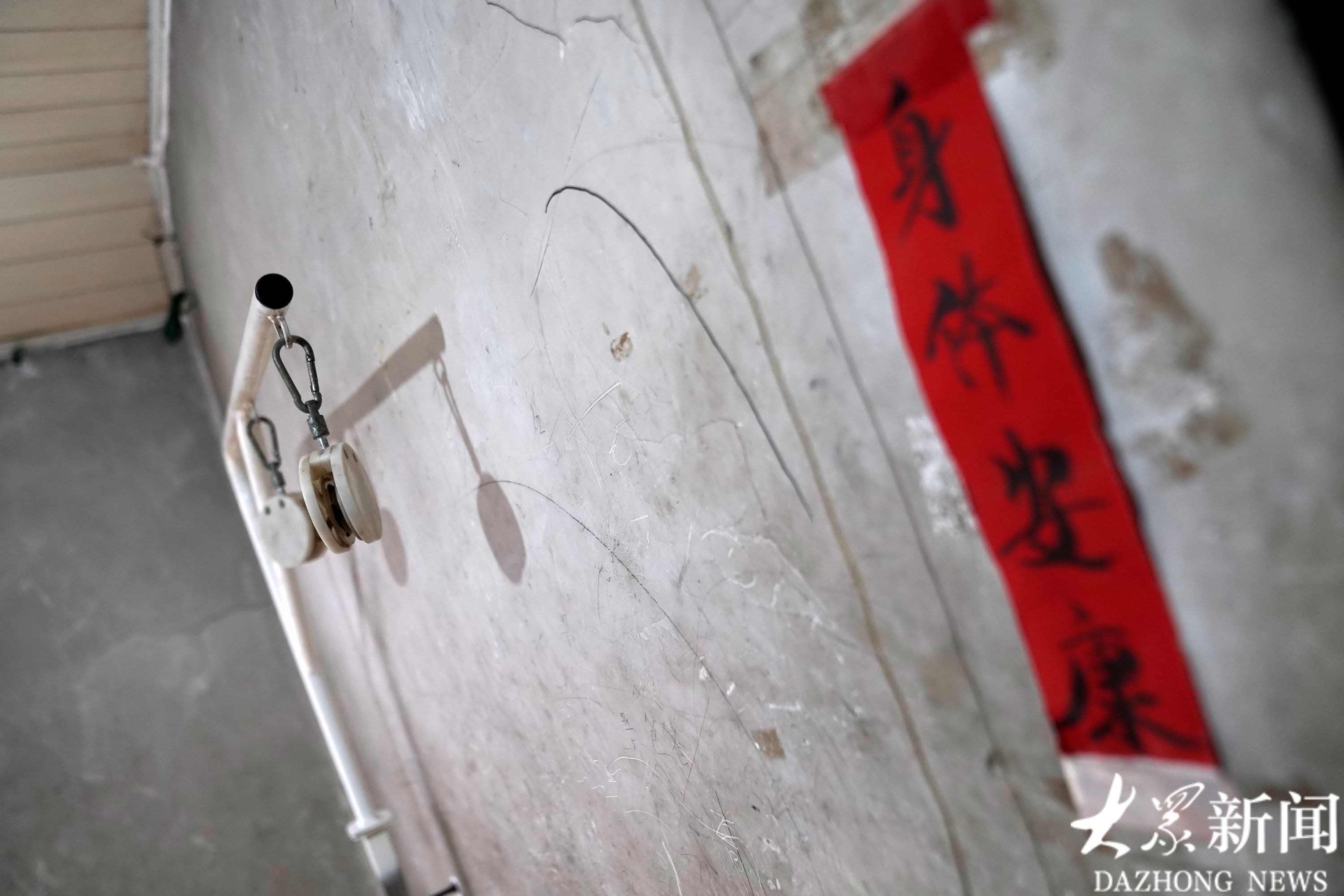 何炎格床尾墙上的康复器材已经很久没有用过