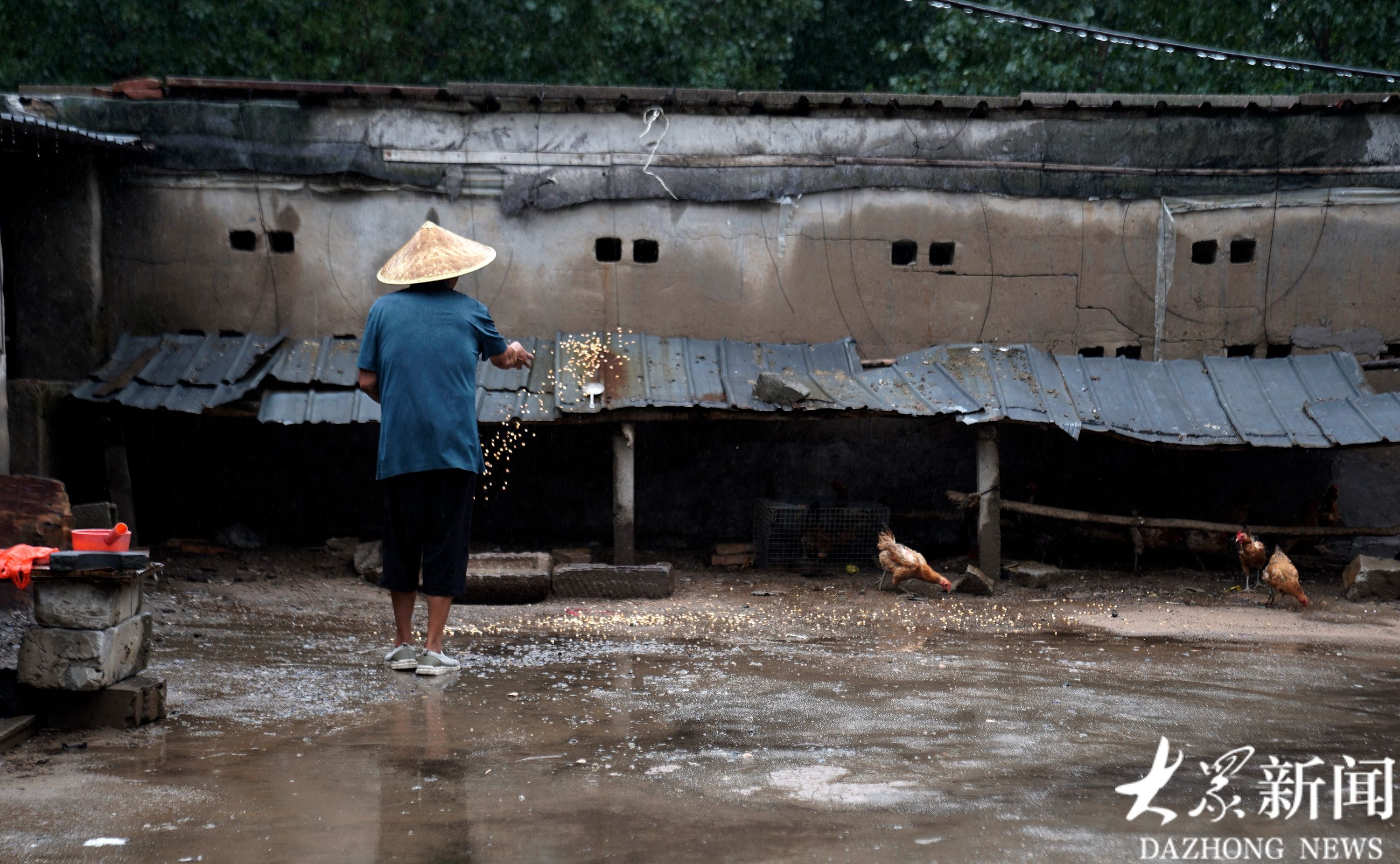 忙完手头的琐事,爷爷何志军想起鸡还没喂,抓紧时间给鸡撒了几把玉米粒