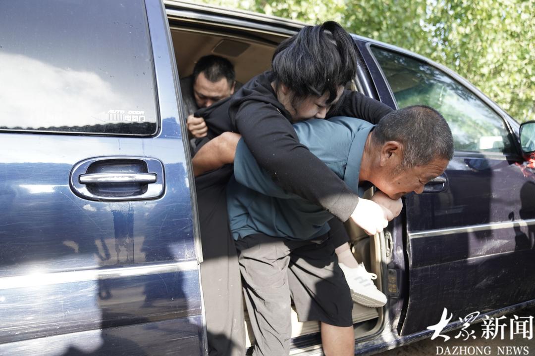 老师和志愿者等早已等候在门口。见到何炎格,他们快步上前,却一时不知该如何搀扶——爷爷已经习惯性地蹲下身,准备背起孙女。