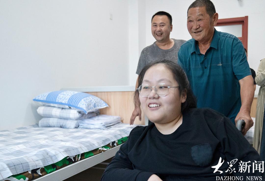 山东理工大学为何炎格准备的无障碍居室内,老师特地上门为行动不便的她办理入学手续