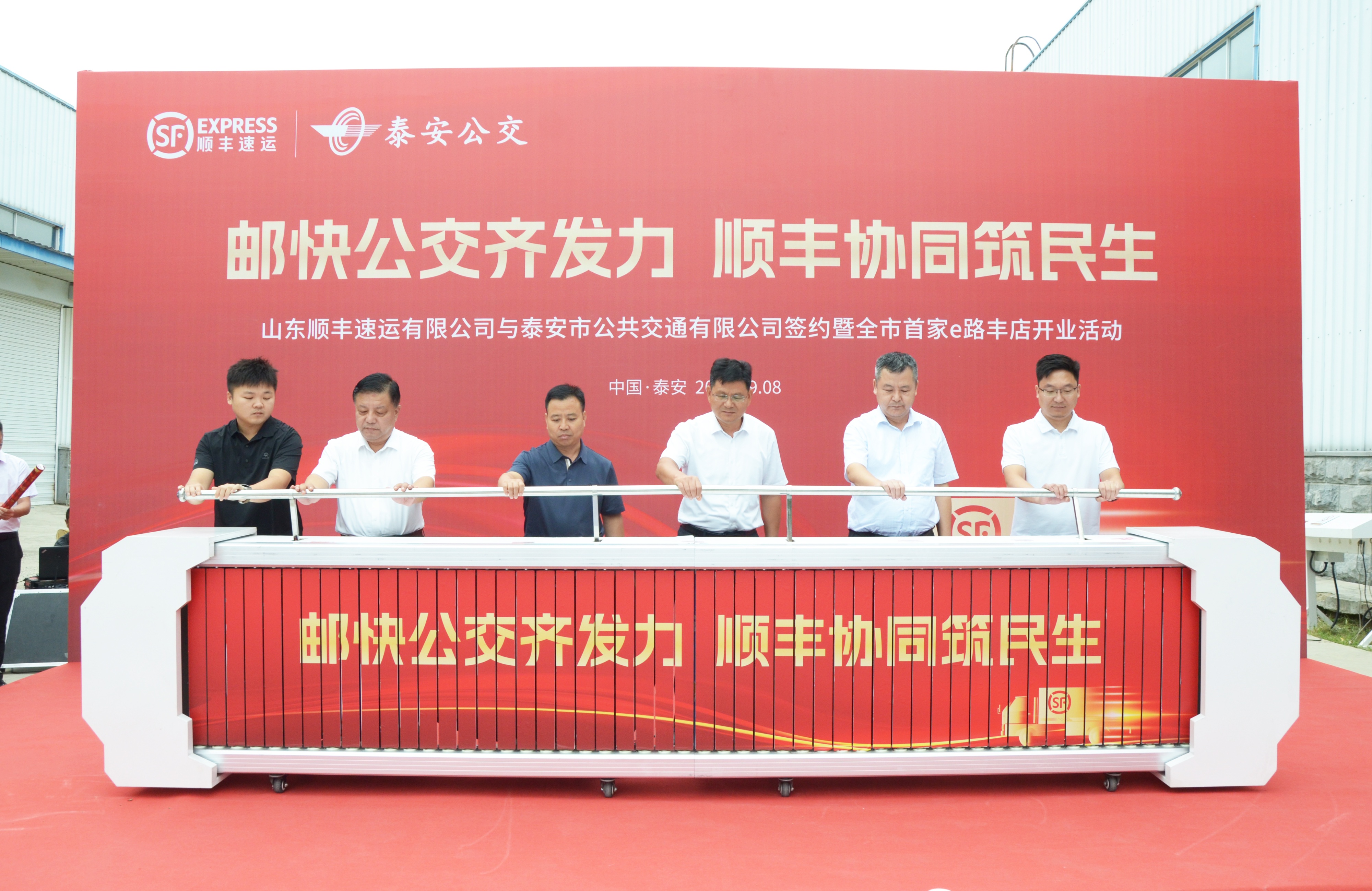 9月8日上午,泰安市公共交通有限公司(以下简称 “泰安公交”)与山东顺丰速运有限公司(以下简称 “山东顺丰”)在泰安公交总部举行“邮快公交齐发力,顺丰协同筑民生”战略合作签约仪式,同步启动全市首家“e路丰店”。