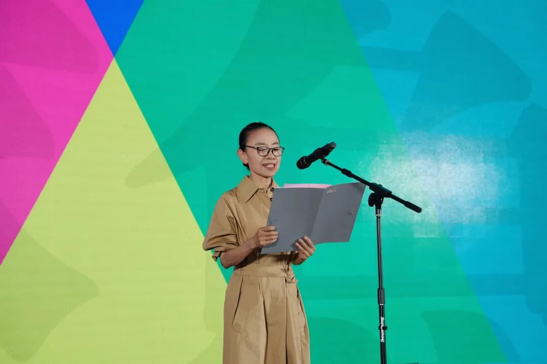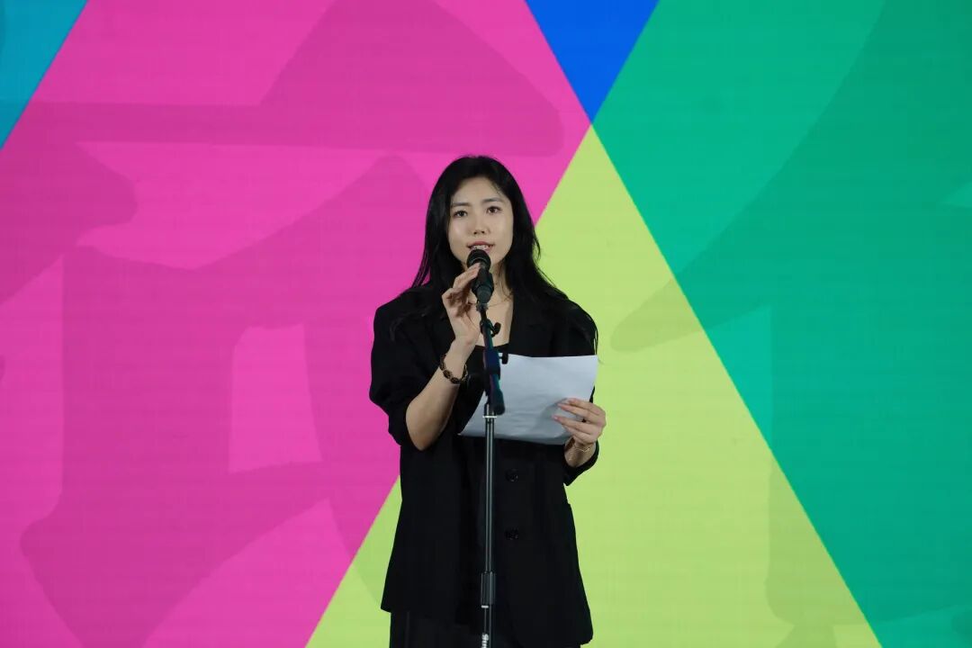 李潇作为青年油画创作者代表发言,她说:“‘青绿’不仅代表着山水的葱茏、自然的生机,更象征着一份历经风雨而愈发坚韧的齐鲁精神。它承载着深厚的文化记忆,也寄托着我们对于生态未来与人文传承的深切期待。我幸运能以画笔诉说齐鲁故事。这个时代充满机遇,也面临语言突破与风格建立的挑战。身为教师,我深感“教学相长”的意义。艺术教育,是技艺的传递,更是文化与情感的扎根。”