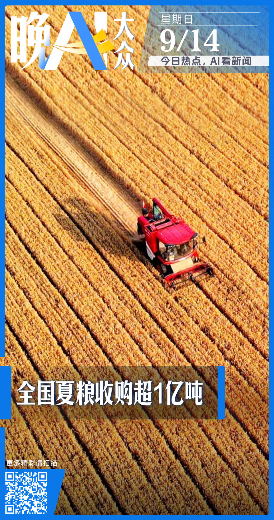 晚AI大众|全国夏粮收购超1亿吨;国庆中秋假期购票日历出炉