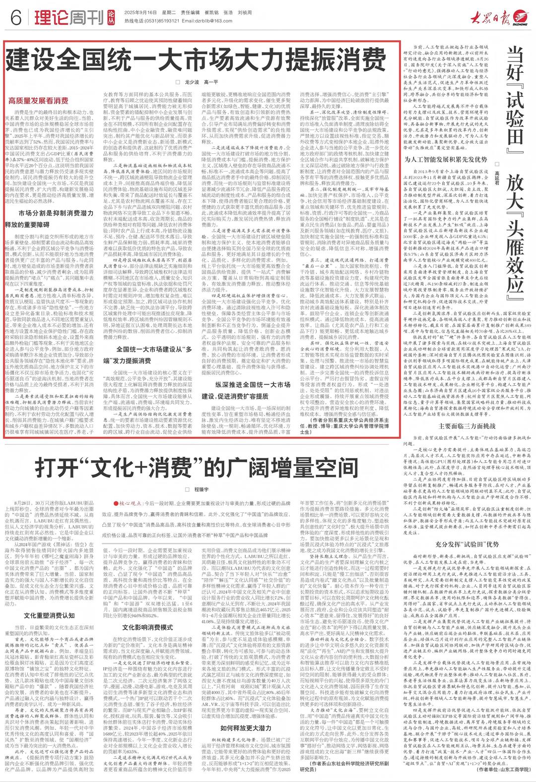 建设全国统一大市场大力提振消费