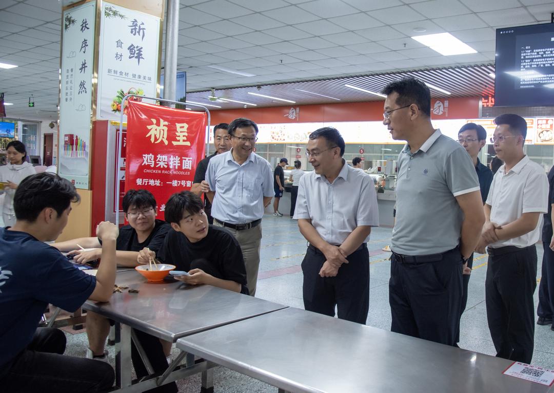 检查组走进校园餐厅围绕食品卫生安全展开细致排查。在核查食材采购溯源记录、后厨卫生状况、餐具消毒流程及食品留样情况的同时,梁家和与正在就餐的同学们亲切交流,倾听大家对菜品质量、价格及就餐环境的意见建议,耐心询问学生对饮食和校园后勤服务的诉求,并叮嘱后勤部门务必结合学生反馈优化服务,既要守住食品卫生“安全线”,也要提升师生就餐“幸福感”。在校园超市,重点检查商品保质期、储存条件及价格稳定情况,要求超市负责人严把质量关,为师生提供安全放心的购物环境。