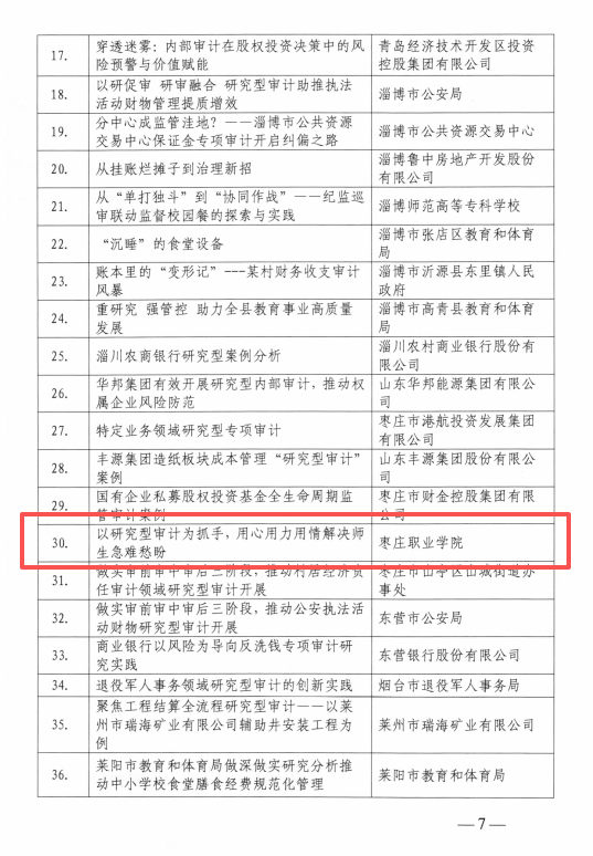 枣庄职业学院内审案例获评2025年度全省优秀案例
