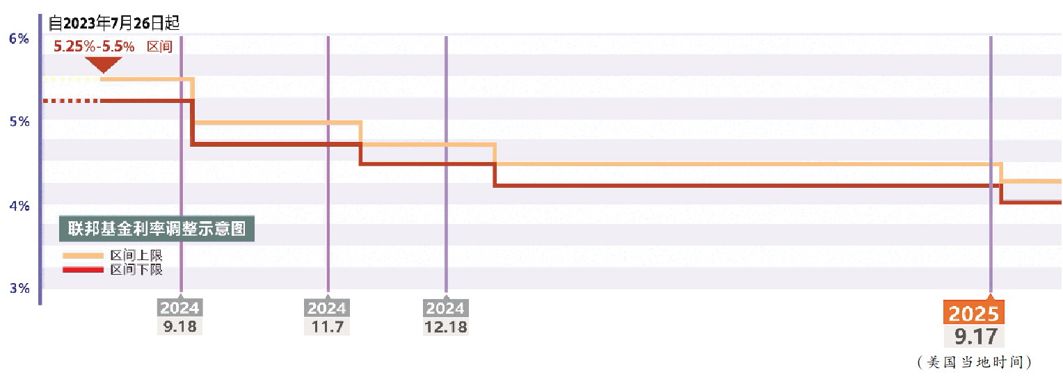 ■美国当地时间9月17日(北京时间9月18日凌晨),美联储最新的联邦公开市场委员会(FOMC)货币政策会议纪要显示,美联储决定将联邦基金利率目标区间下调25个基点,至4.00%-4.25%之间。这是美联储自2024年12月以来的首次降息。