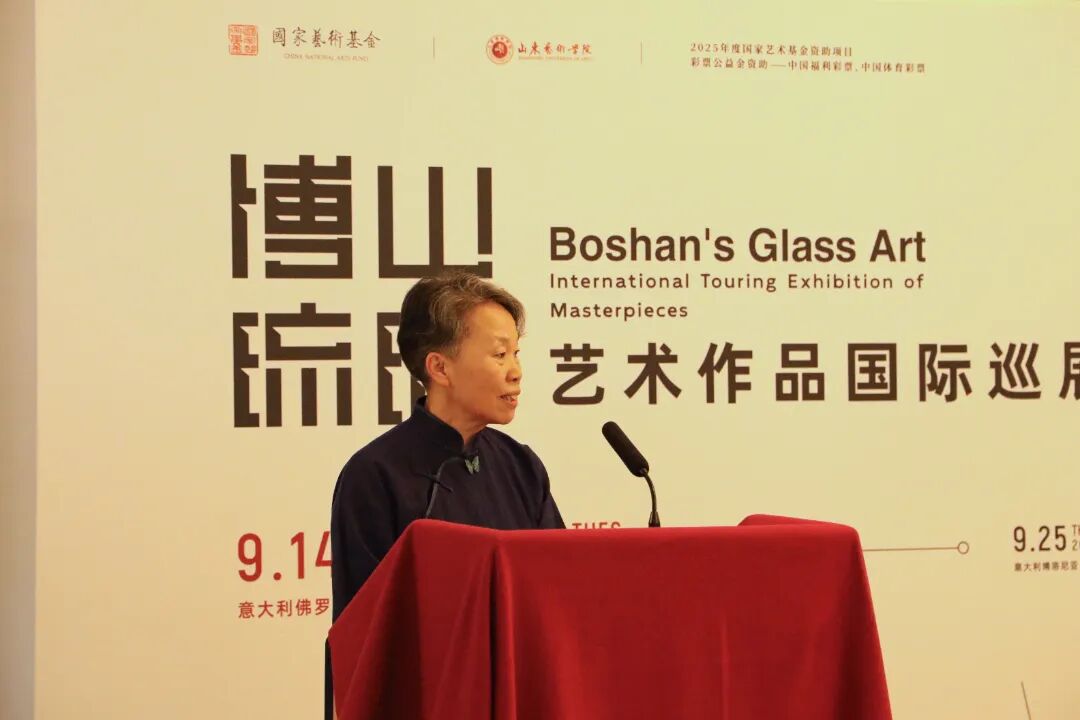 意大利当地时间2025年9月15日下午17点,由山东艺术学院主办的国家艺术基金2025年度传播交流推广资助项目“博山琉璃”艺术作品国际巡展开幕式在佛罗伦萨阿尔巴尼艺术馆举行,山东艺术学院设计学院院长远宏主持开幕式。