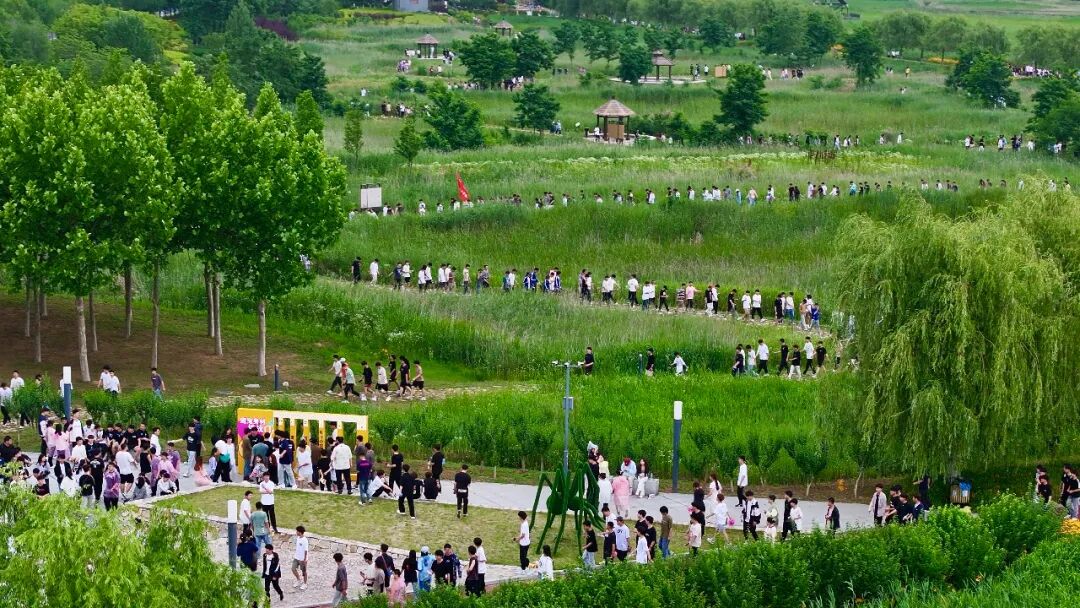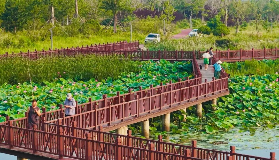 南海新区并未止步于承办专业赛事,而是以专业赛事为契机,推动体育与民生深度融合,以“体育+健康”惠及更多群众。南海新区大力推广全民健身运动,太极拳、乒乓球、柔力球等活动在社区、公园广泛开展,定期举办群众体育赛事,让健康活力成为城市的鲜明底色。为满足居民游客的健身需求,南海新区还在万亩松林、金花河湿地公园等区域,精心规划建设了多条健身步道,步道串联自然景观与休闲节点,既保障了锻炼的舒适性,又提升了休闲体验感,成为日常锻炼、亲子游玩、休闲漫步的热门打卡地。“每天都会锻炼,这里空气清新,负氧离子含量高,平时还会和大家一起练八段锦,日子过得充实又开心。”居民苏鹏的话语,道出了群众对健康生活的喜爱。