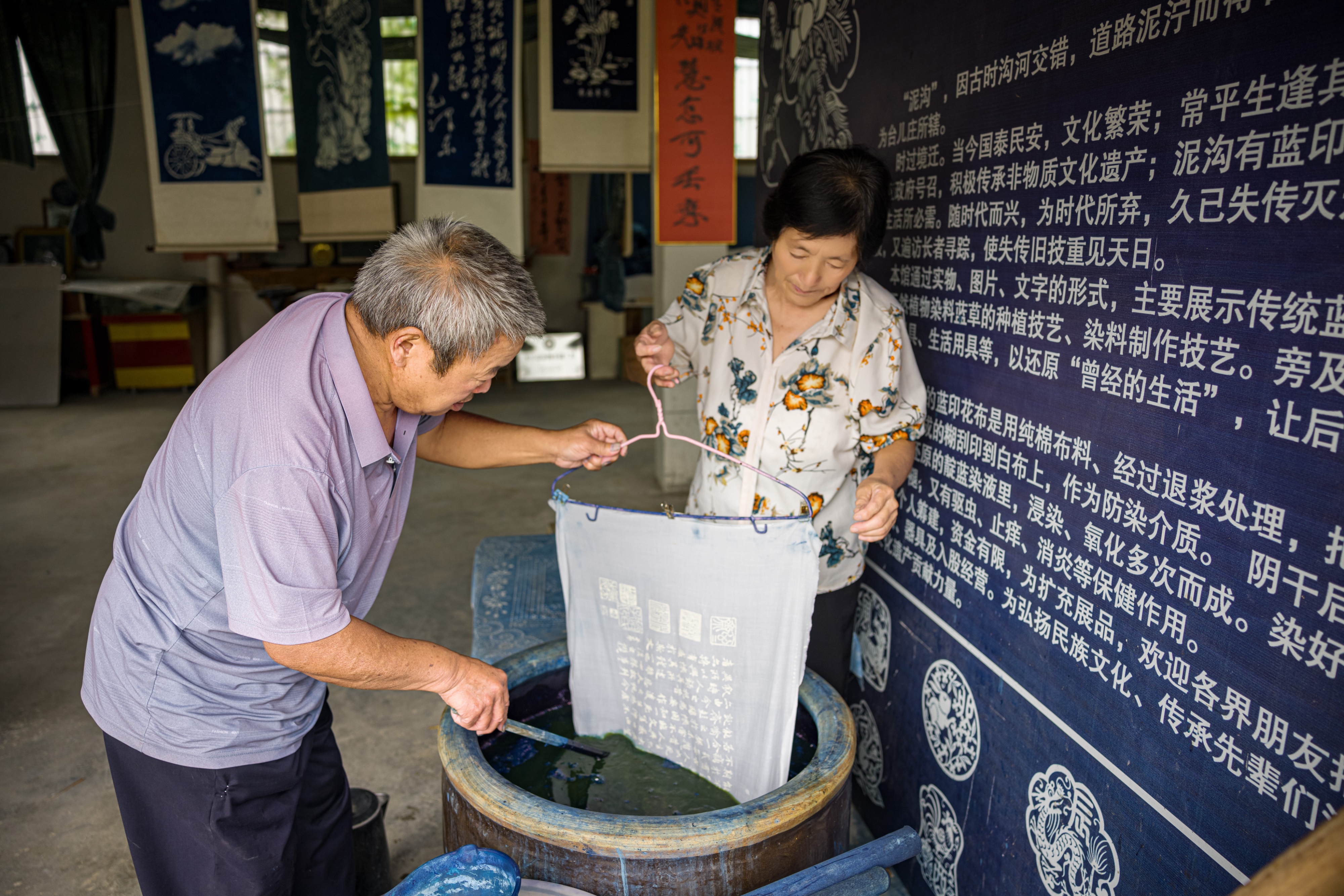 2022年的新春佳节,泥沟镇东黄庄村李常平兴高采烈地捧回了“泥沟青花布印染技艺”省级非物质文化遗产牌匾,次年,他被认定为枣庄市级第四批省级物质文化遗产“泥沟青花布印染技艺”代表性传承人。