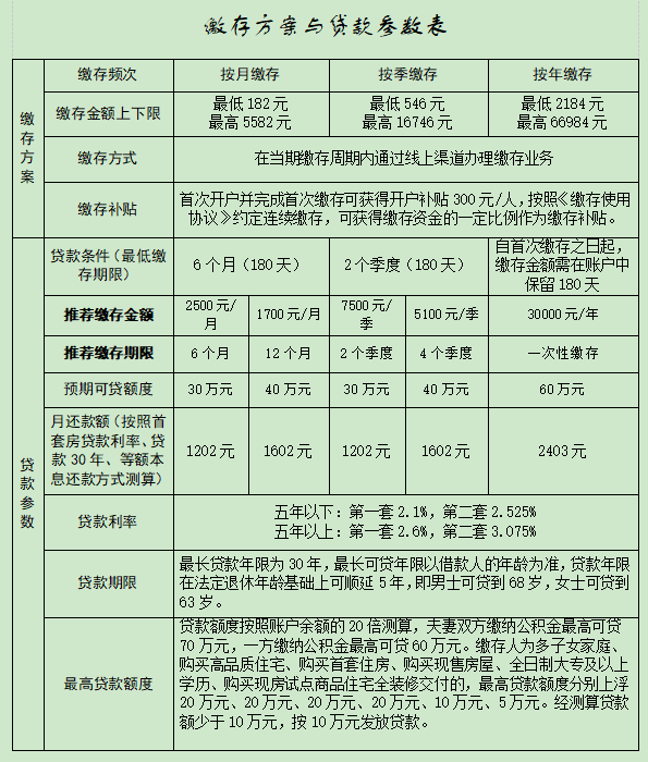 贷款额度:按照账户余额的20倍测算,夫妻双方缴纳公积金最高可贷70万元,一方缴纳公积金最高可贷60万元。缴存人为多子女家庭、购买高品质住宅、购买首套住房、购买现售房屋、全日制大专及以上学历、购买现房试点商品住宅全装修交付的,最高贷款额度分别上浮20万元、20万元、20万元、20万元、10万元、5万元。经测算贷款额少于10万元,按10万元发放贷款。