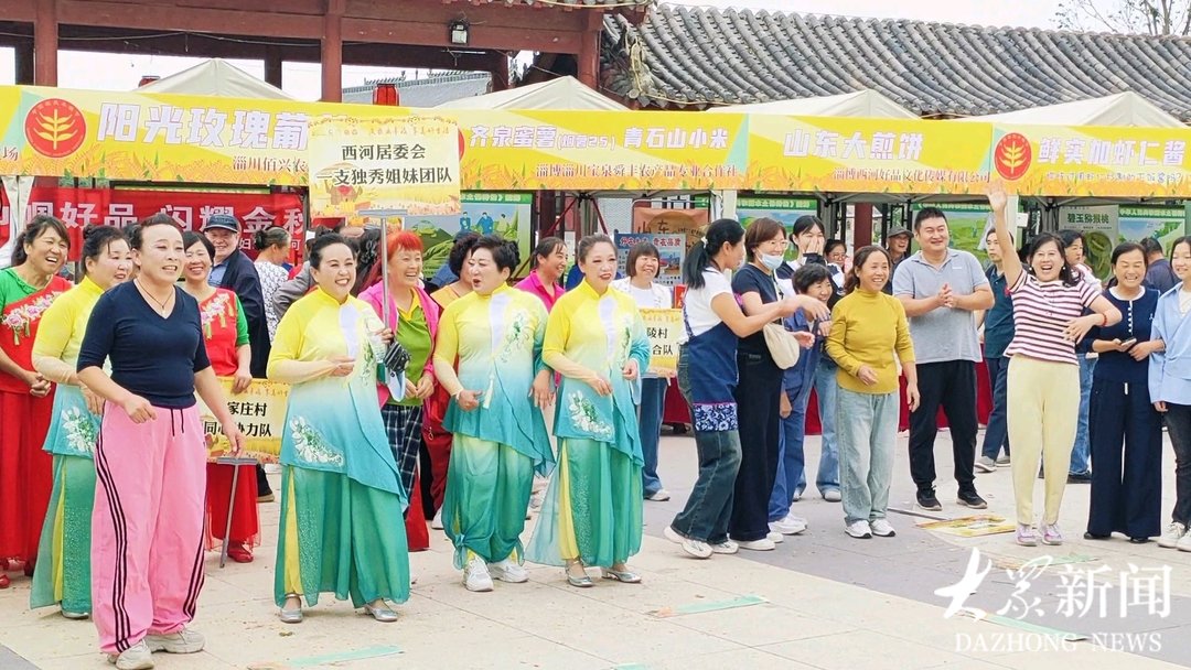 与此同时,农耕文化系列活动同步开展。“欢庆丰收·悦享生活”农民趣味运动会涵盖挑扁担、抢红薯、搓玉米等项目,在竞技中尽显新时代农人活力;淄川区老年书画协会成员以笔墨勾勒丰收盛景;眼科义诊、志愿服务、牙齿保健等为周边村民提供了家门口的便利服务……活动兼顾文化传承、助农增收与群众互动,为乡村振兴注入新动能。