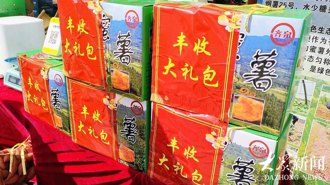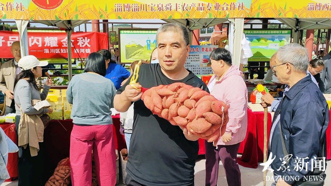 “我们今天准备了1000斤左右的蜜薯,有礼盒装,也有网兜装,很受欢迎,还没到中午已经卖出1/3,估计下午就能卖完。”淄川宝泉舜丰农产品专业合作社负责人齐圣舜在展位前不停地帮顾客挑选蜜薯。