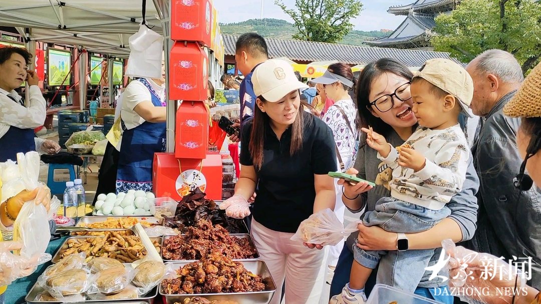 “快来尝尝这蜜薯,口感软糯香甜,咱再买一袋吧。”“用西河煎饼蘸这个花椒酱,真是满口留香,我给爸妈买回去尝尝。”在丰收市集·淄川农家美食汇现场,来自太河镇佰宏家庭农场、淄川宝泉舜丰农产品专业合作社等单位的30个展位展示了煎饼、蜜薯、“阳光玫瑰”葡萄、花椒酱等淄川本地特色农副产品,供游客品尝购买。