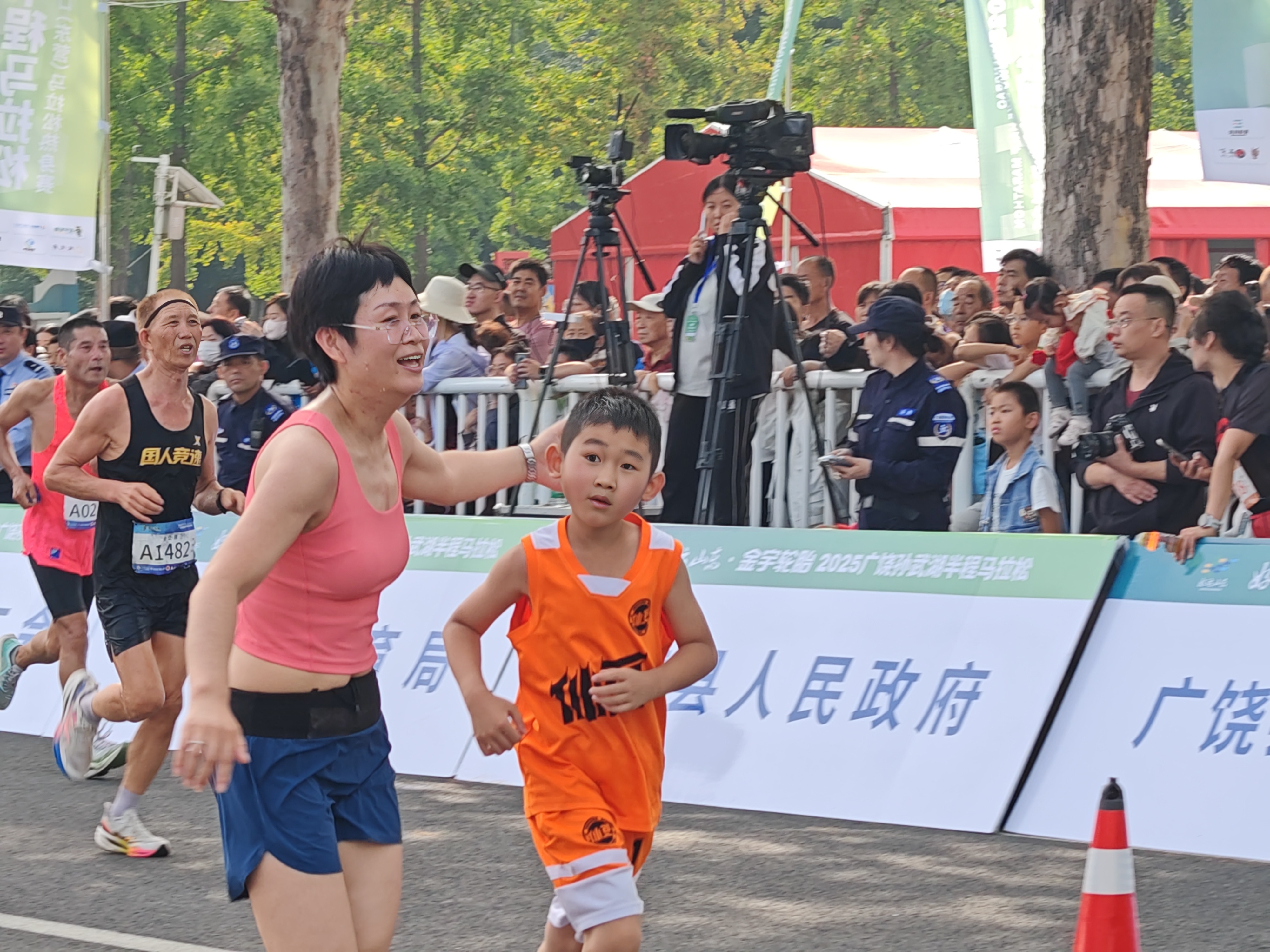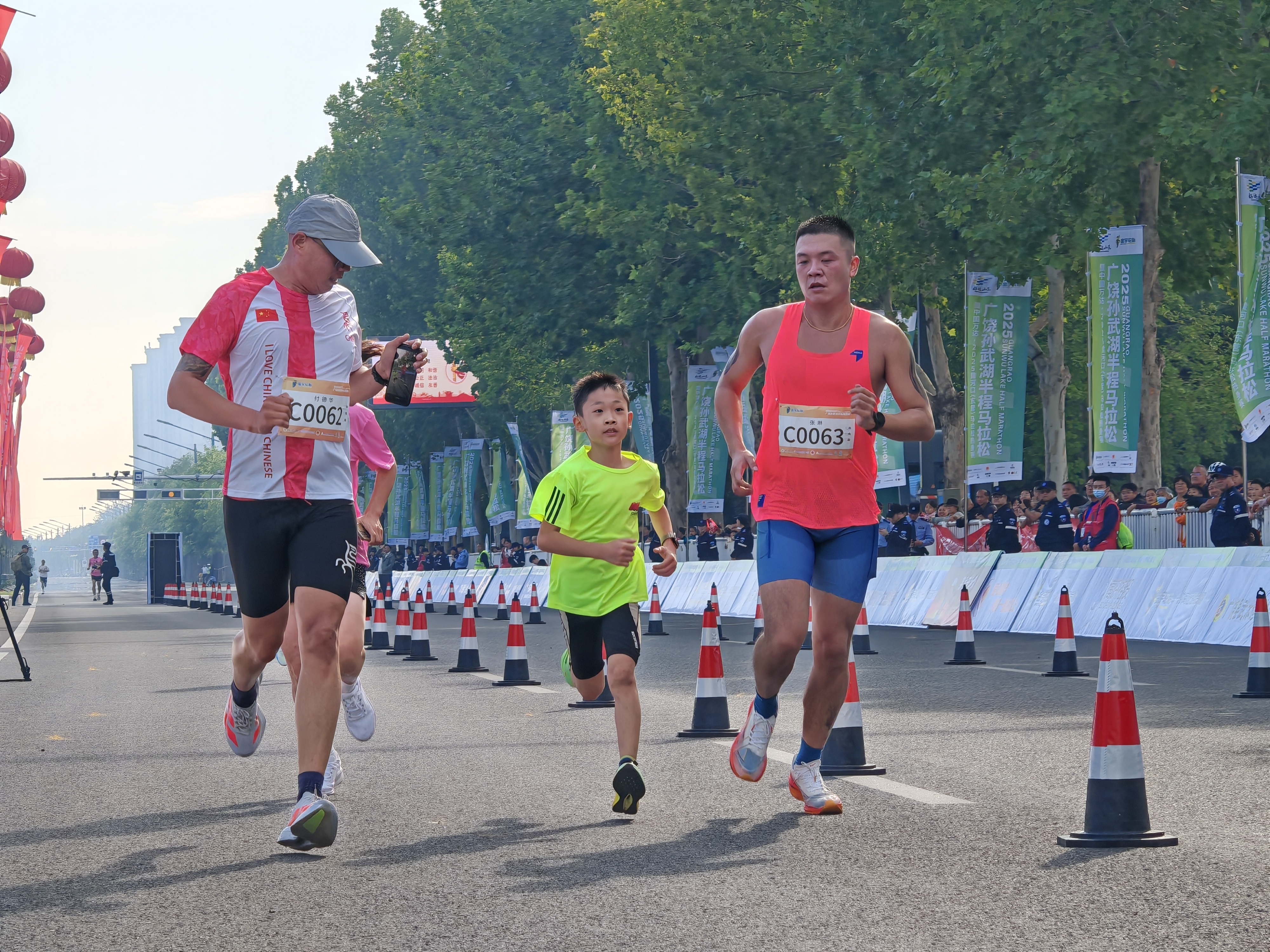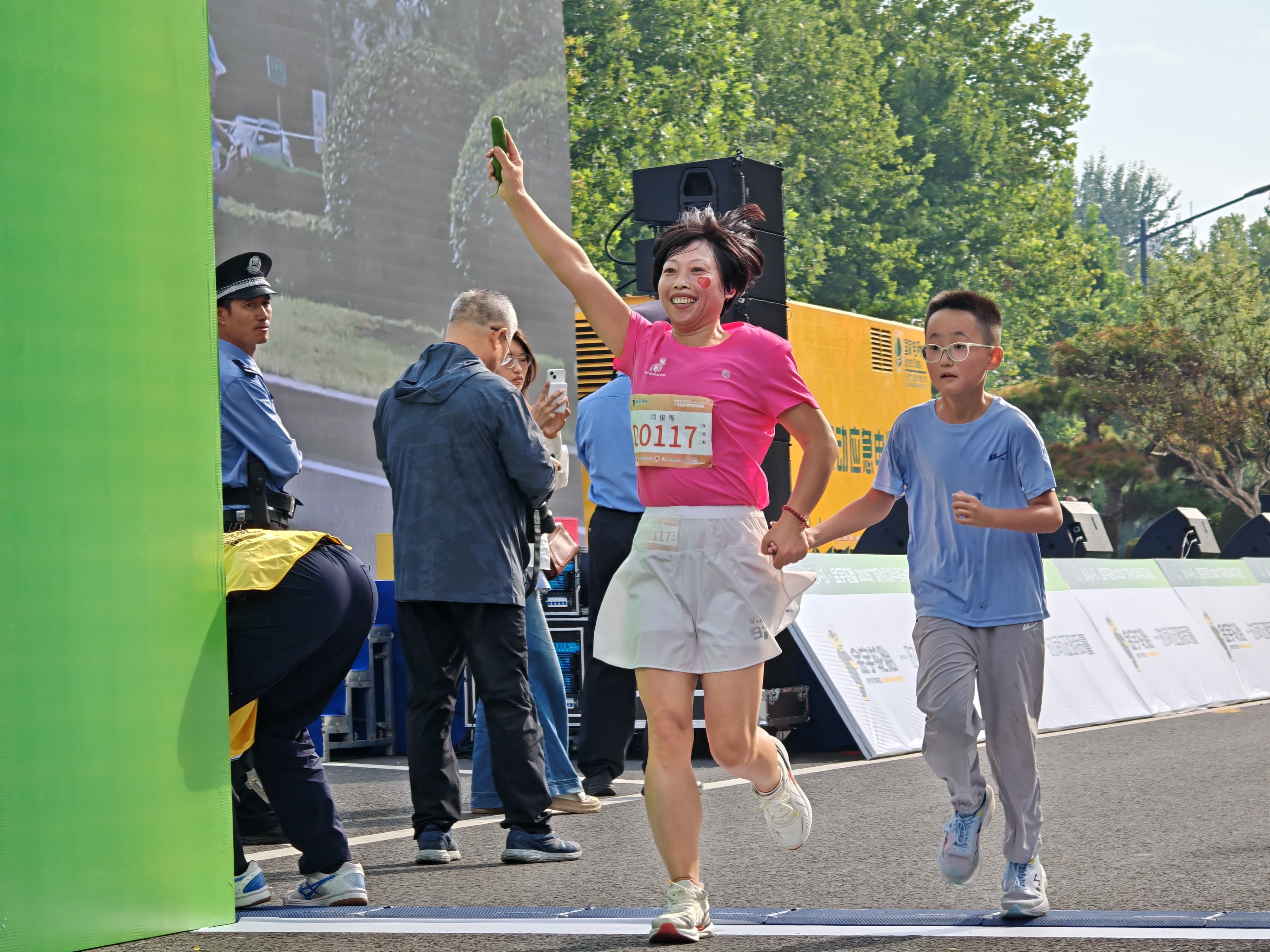 6时10分,起点跑道前,9岁的张子阳一身跑步装备紧紧跟在母亲张敬华身后。他和母亲早上4时30分便从桓台县果里镇的家中出发,赶往哥哥读书的城市——广饶,陪伴母亲完成人生首场半程马拉松。张敬华以1小时51分钟完赛,张子阳则在跑友陪伴下以52分钟完成10公里跑。母子二人在这座城市共同留下了美好回忆。