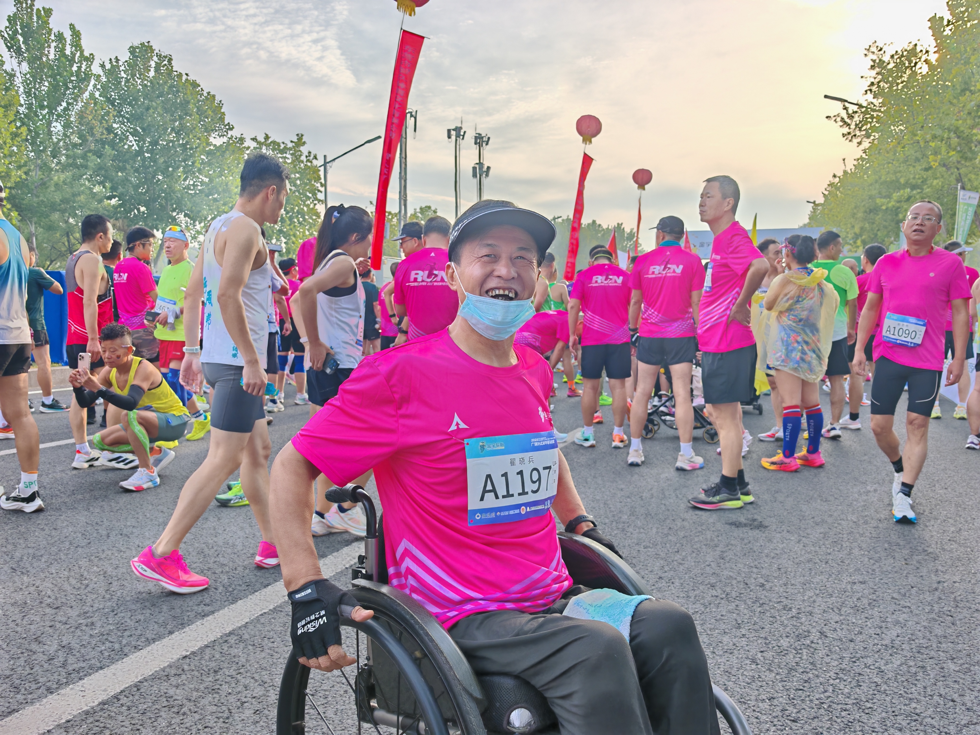 在众多选手中,乘坐轮椅参赛的A1197号选手翟晓兵尤为引人注目。“我身体虽然低了一些,但精神不能低。”20多年前因车祸高位截瘫的淄博人翟晓兵,在广饶马拉松赛场上展现出面对不幸时顽强不屈的精神光芒。