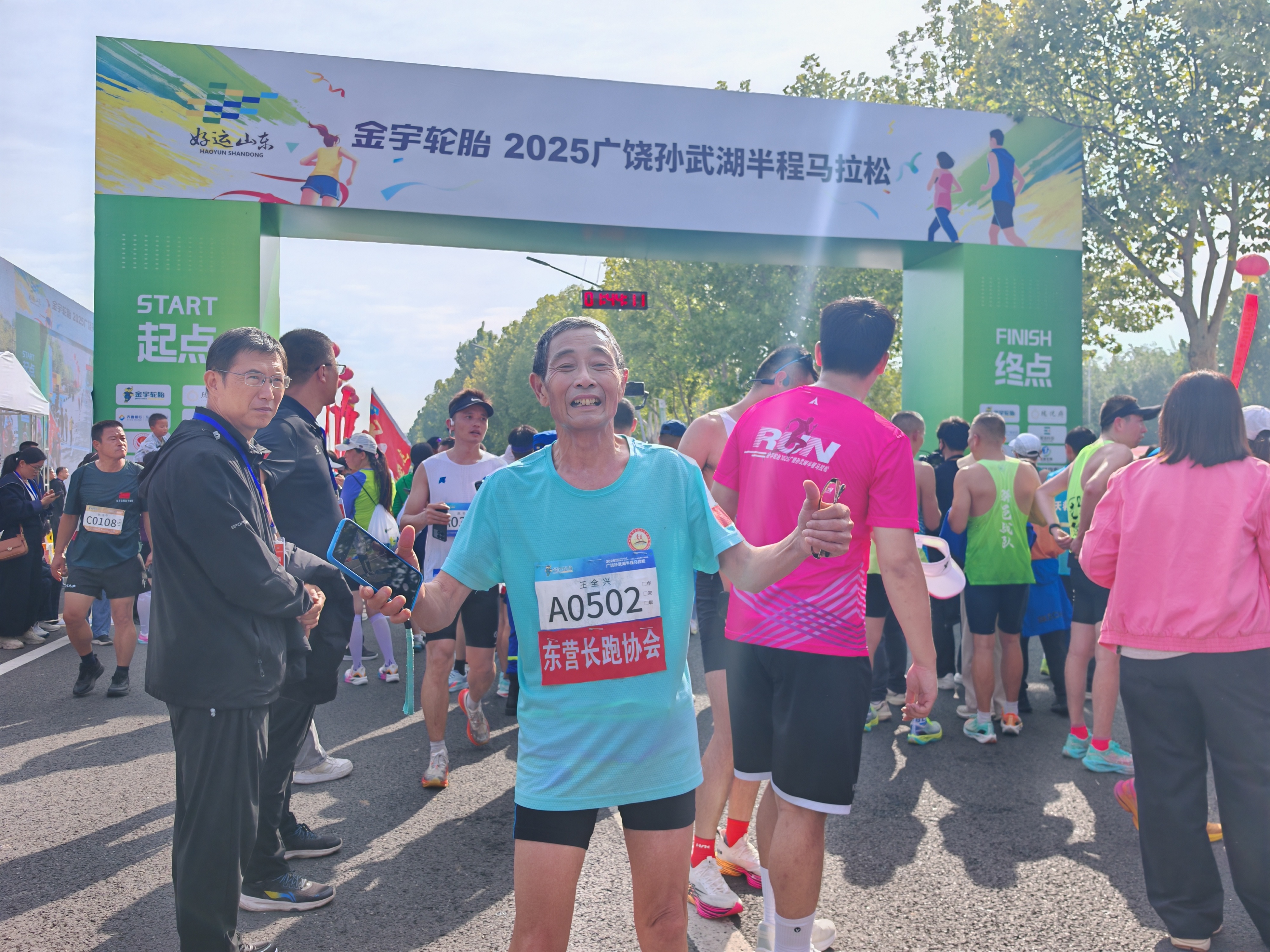 70岁的胜利采油厂退休职工王全兴起得比张子阳还早。“我凌晨3点多就起床,从东营赶来广饶参加半程马拉松。广饶的赛道条件很好,前半程有树荫遮阳,后半程背光,天气也非常适宜。”完赛后的王全兴满头汗珠却语气铿锵,“我从2010年开始跑马拉松,参加过东营第一届马拉松。”他在广饶马拉松再次证明了“我不老,我能行”的生命力量。
