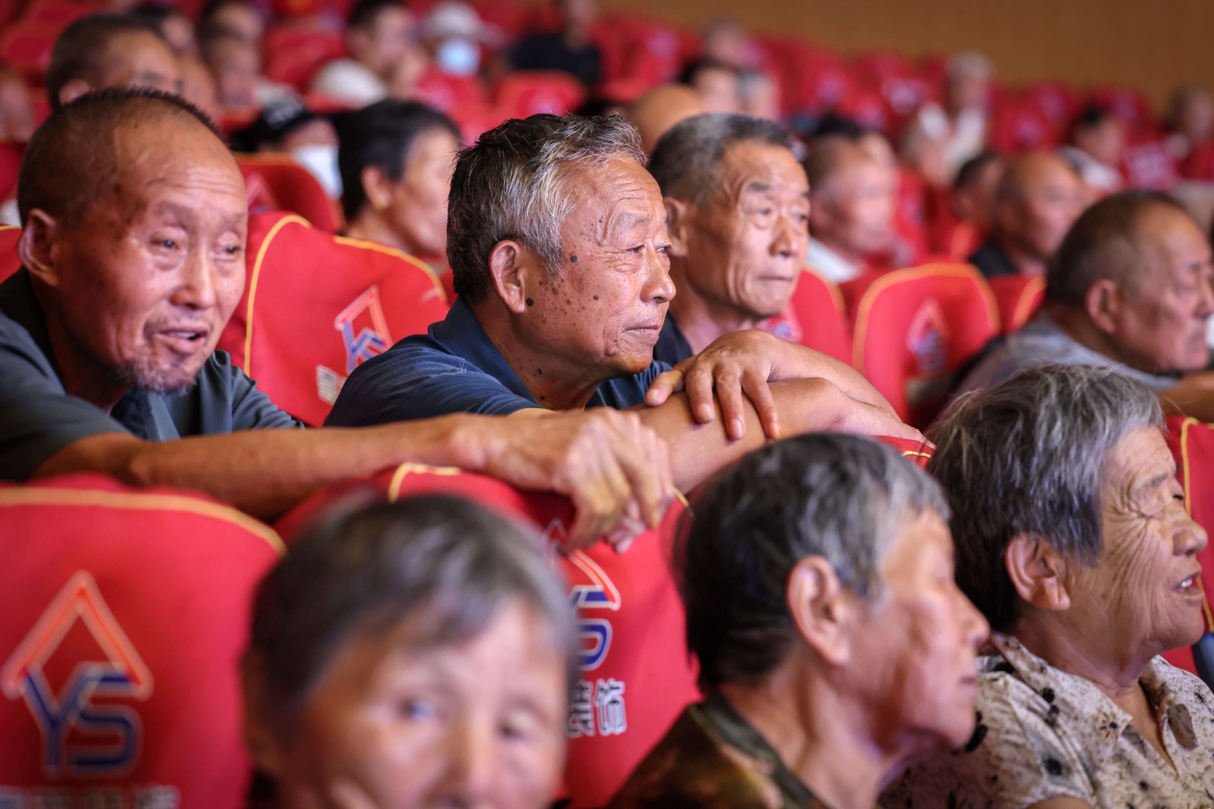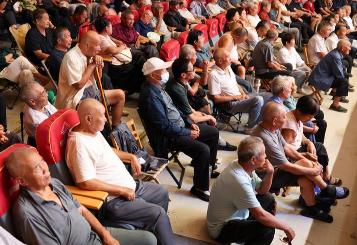 乘公交的、自驾的、步行的,坐轮椅的、拄拐杖的……观众从县城的各个角落赶来,只为赴这一场将于14时鸣锣开唱的大戏。