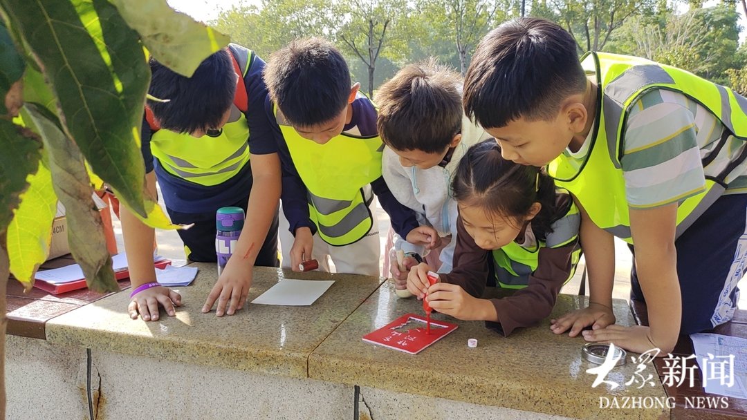曲港观渔的“印刷战报”任务更是一场时空对话。田奚陌小心翼翼地拓印《守护山河》时,墨汁沾了满脸。她却得意道:“我这叫‘战地妆容’!”拓印完成的宣纸被孩子们像旗帜般高举,秋风拂过未干的墨迹,仿佛将八十年前的真理之声送往远方。