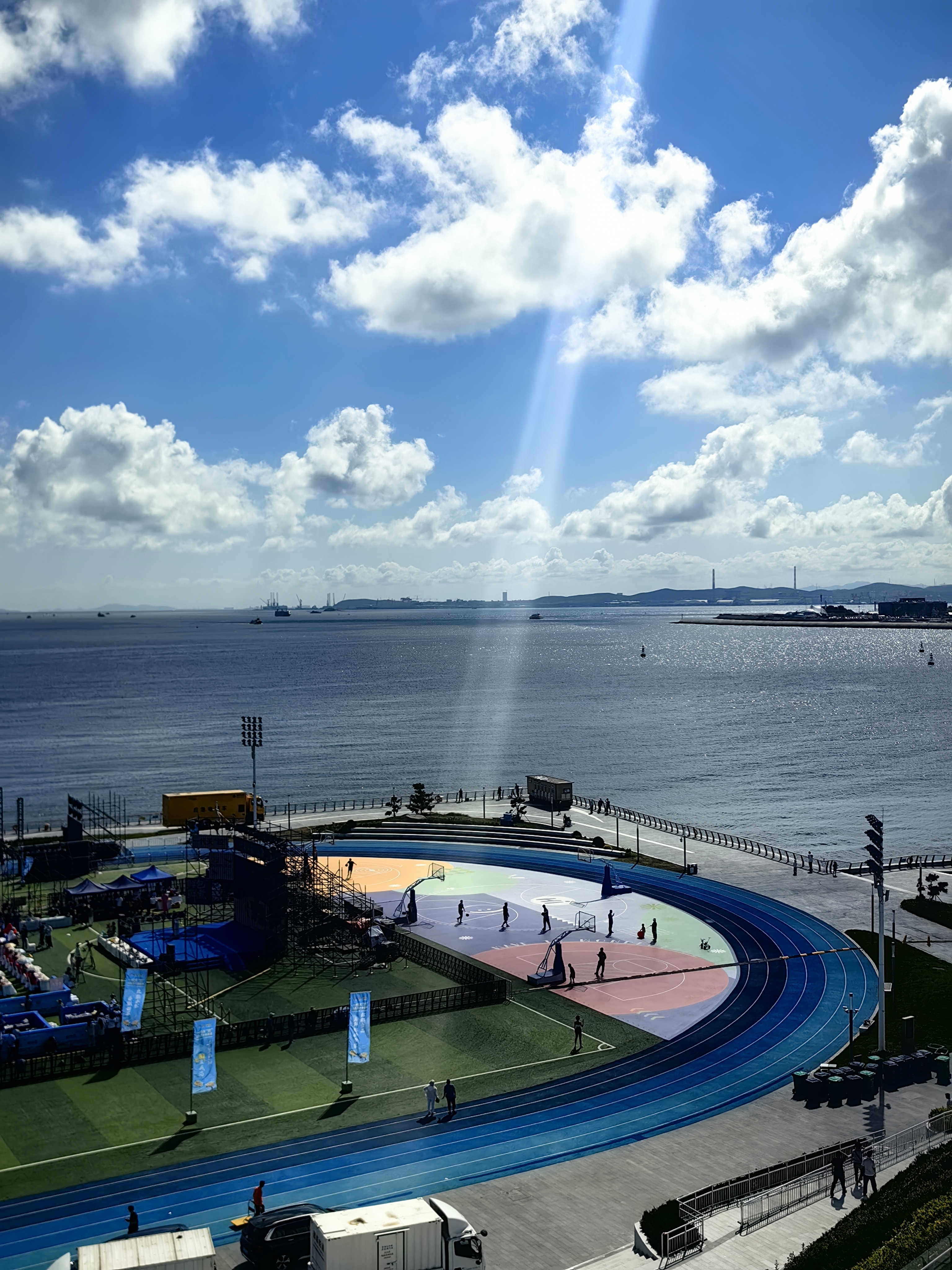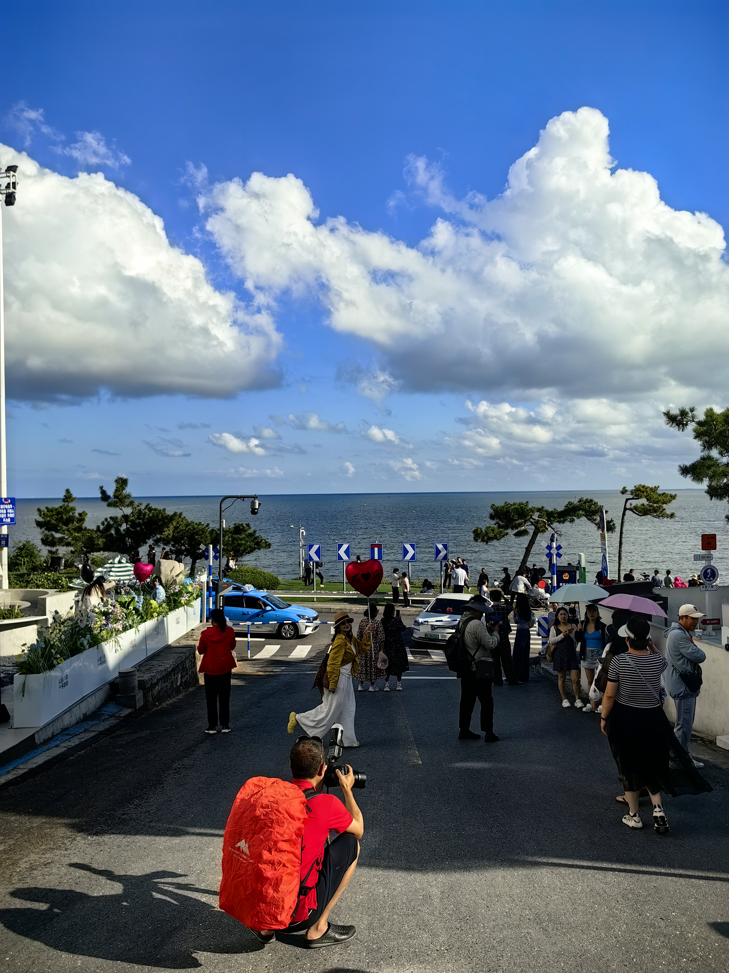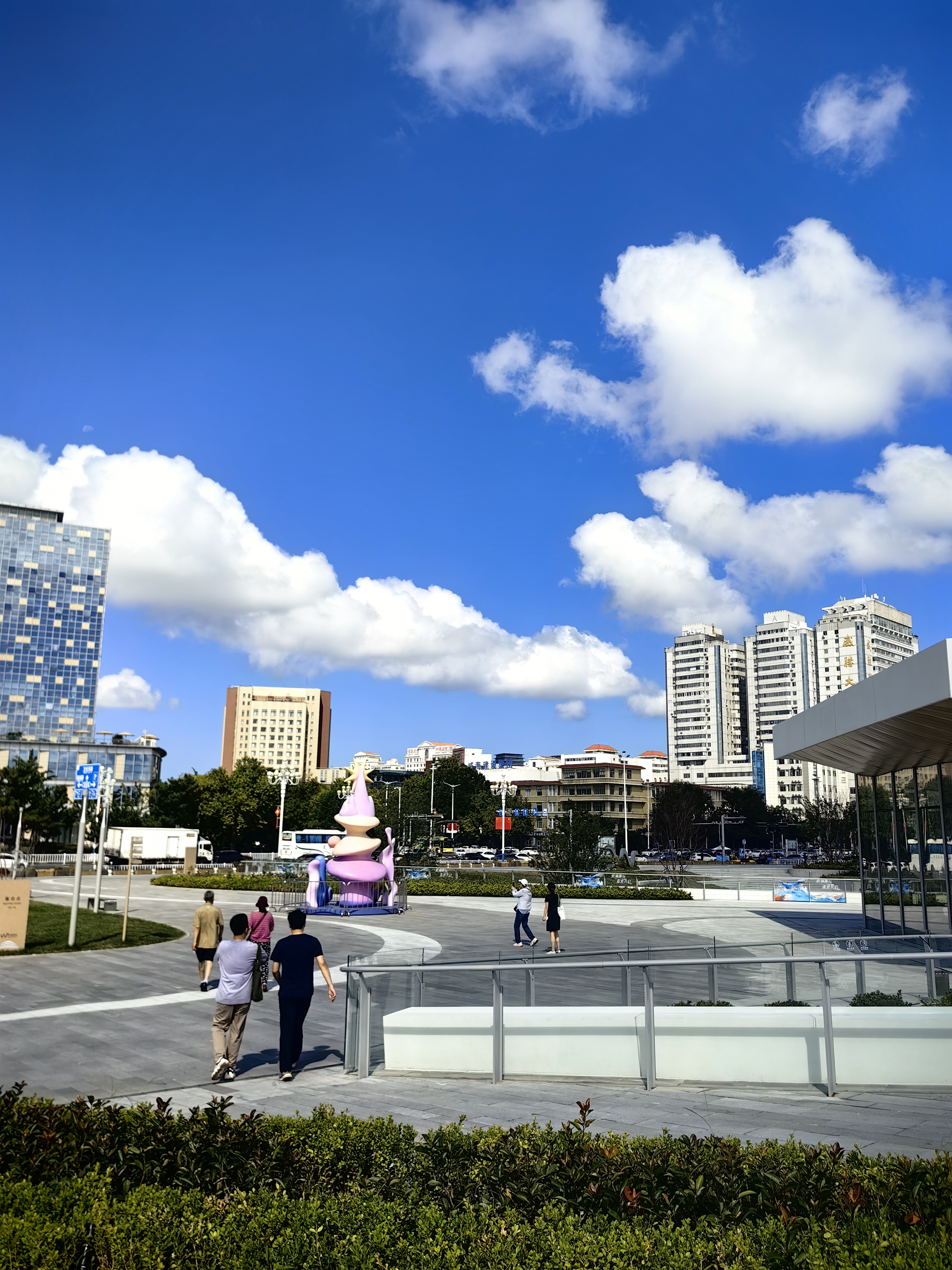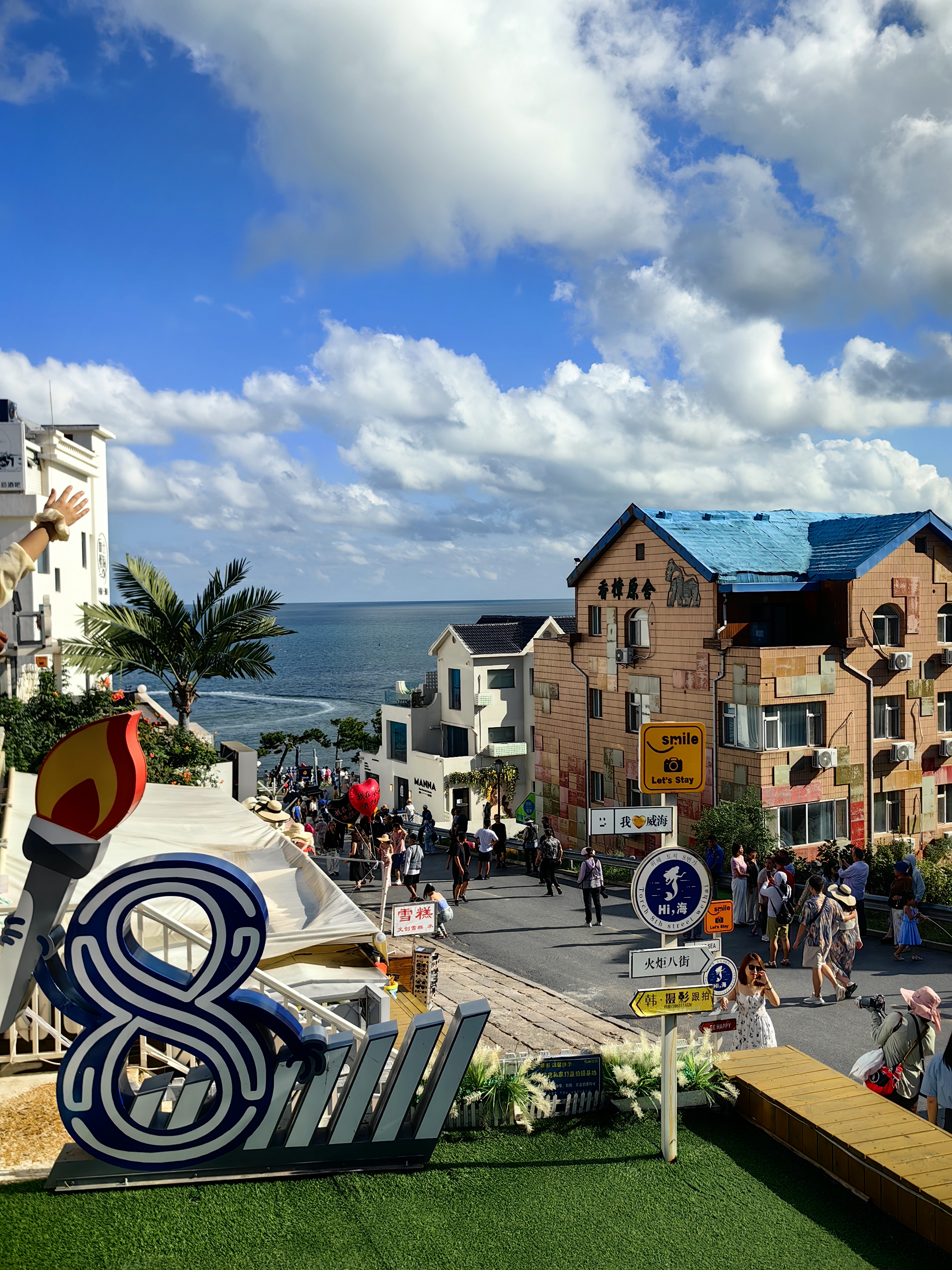 作品拍摄于威海火炬八街、国际海水浴场、幸福门等标志性地点,呈现威海蓝天白云与大海交织的极致魅力。