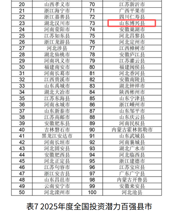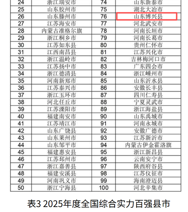 2025年中国中小城市综合实力百强榜揭晓 博兴县入围多个榜单
