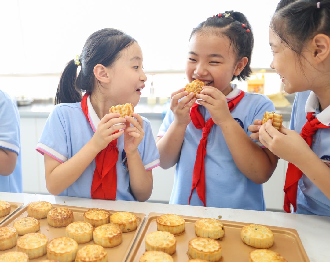 9月25日,在荣成市新时代文明实践中心爱心厨房,一场以“我们的节日·中秋”为主题的月饼制作活动举行,志愿者与府新小学的孩子们一起制作月饼,在亲手实践中感受传统文化魅力,共迎团圆佳节。