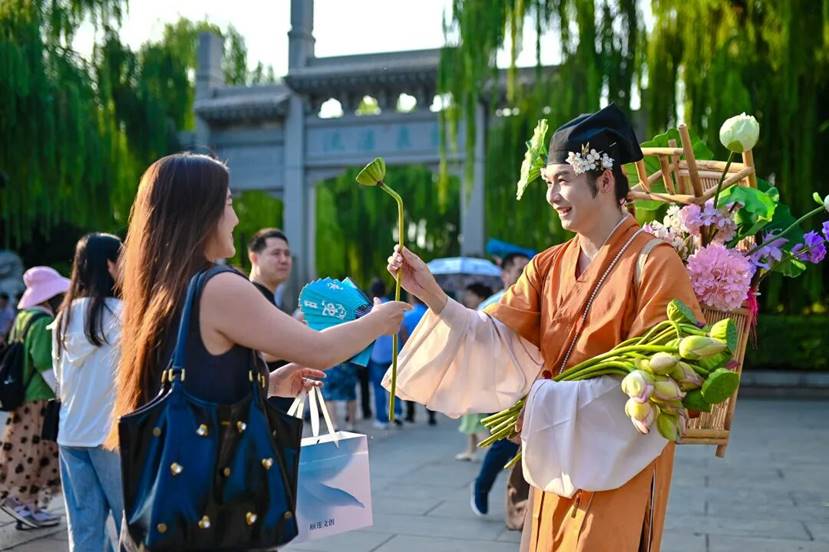 大明湖风景区以“明湖邀月·泉颂华章”为主题,融合传统雅韵与青春活力,打造可看、可吃、可玩、可感的游玩场景。红歌快闪、国风流行乐队、古风NPC合奏、国潮卖货郎、潮流美食等精彩内容轮番登场,带来年轻活力、新鲜有趣的游园体验。